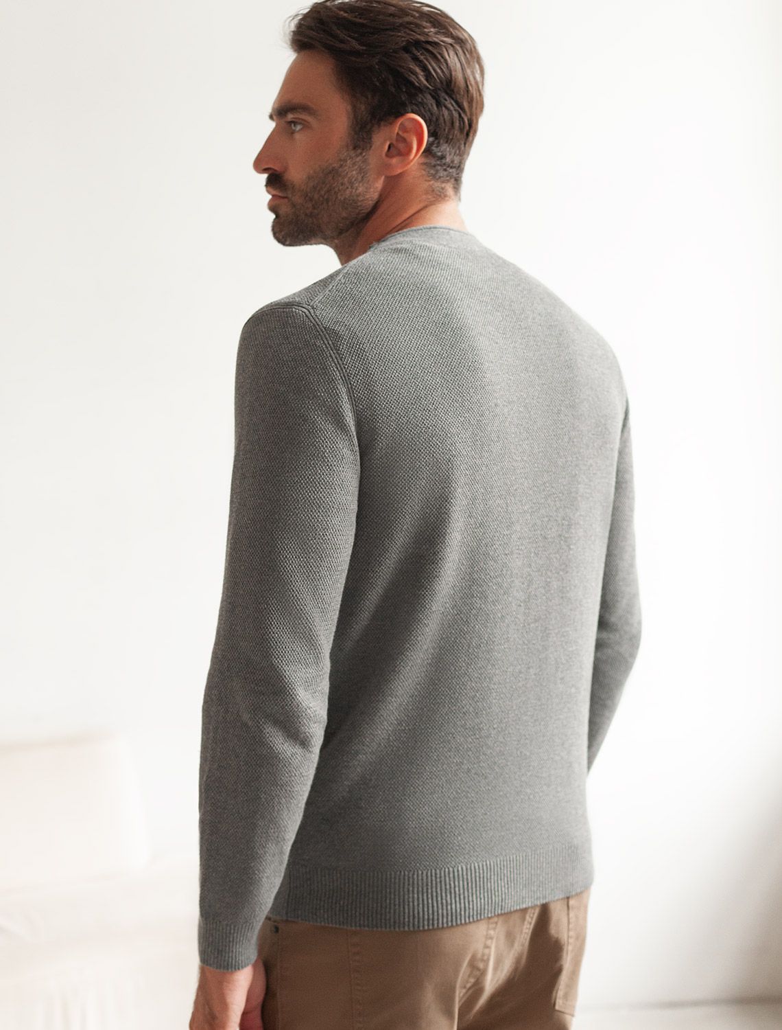 Джемпер фактурной вязки из хлопка с нейлоном U39.015 серый меланж