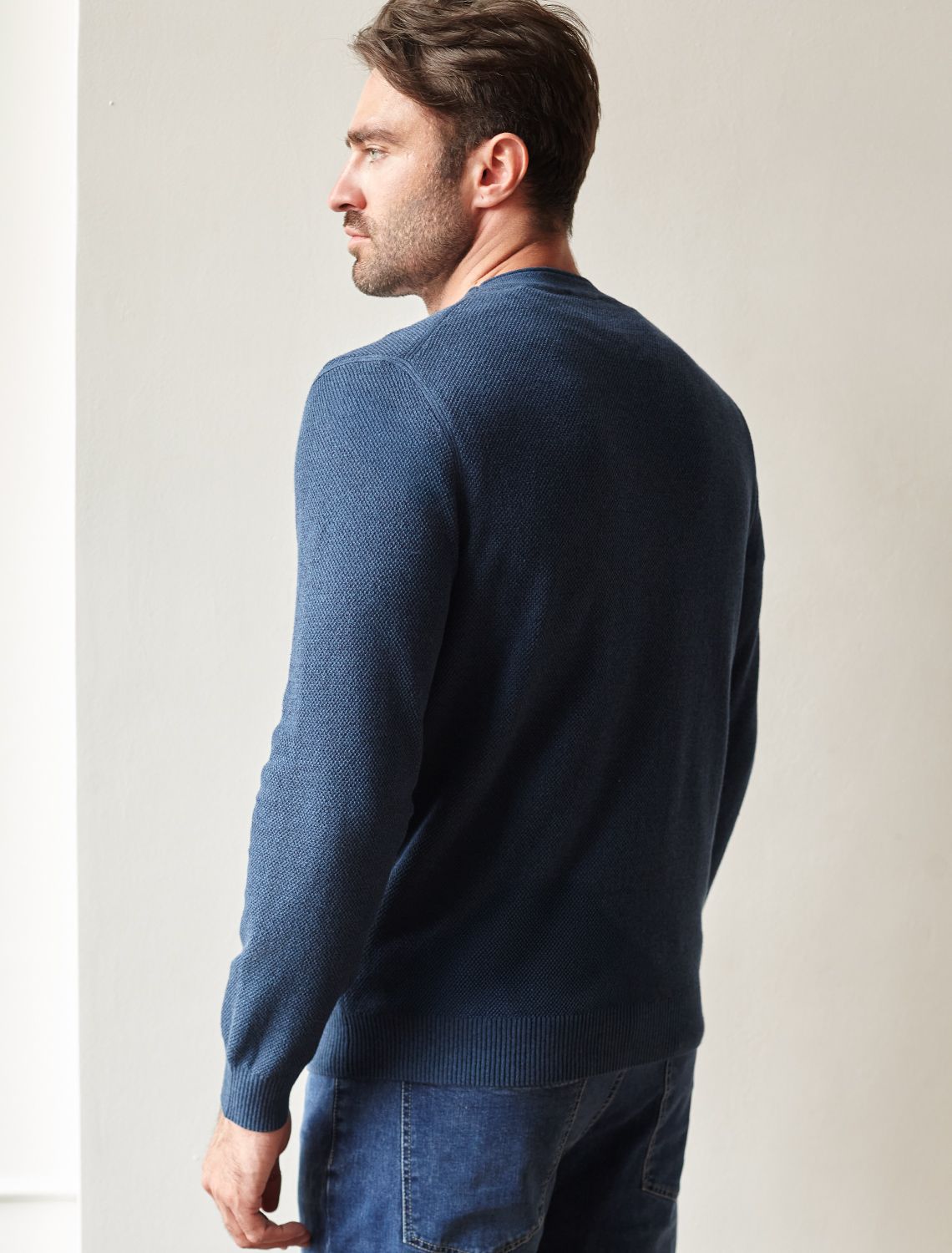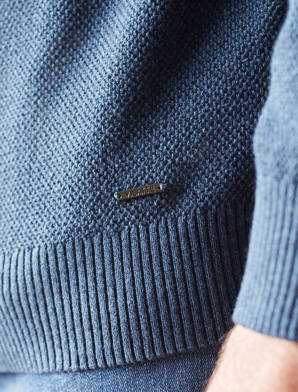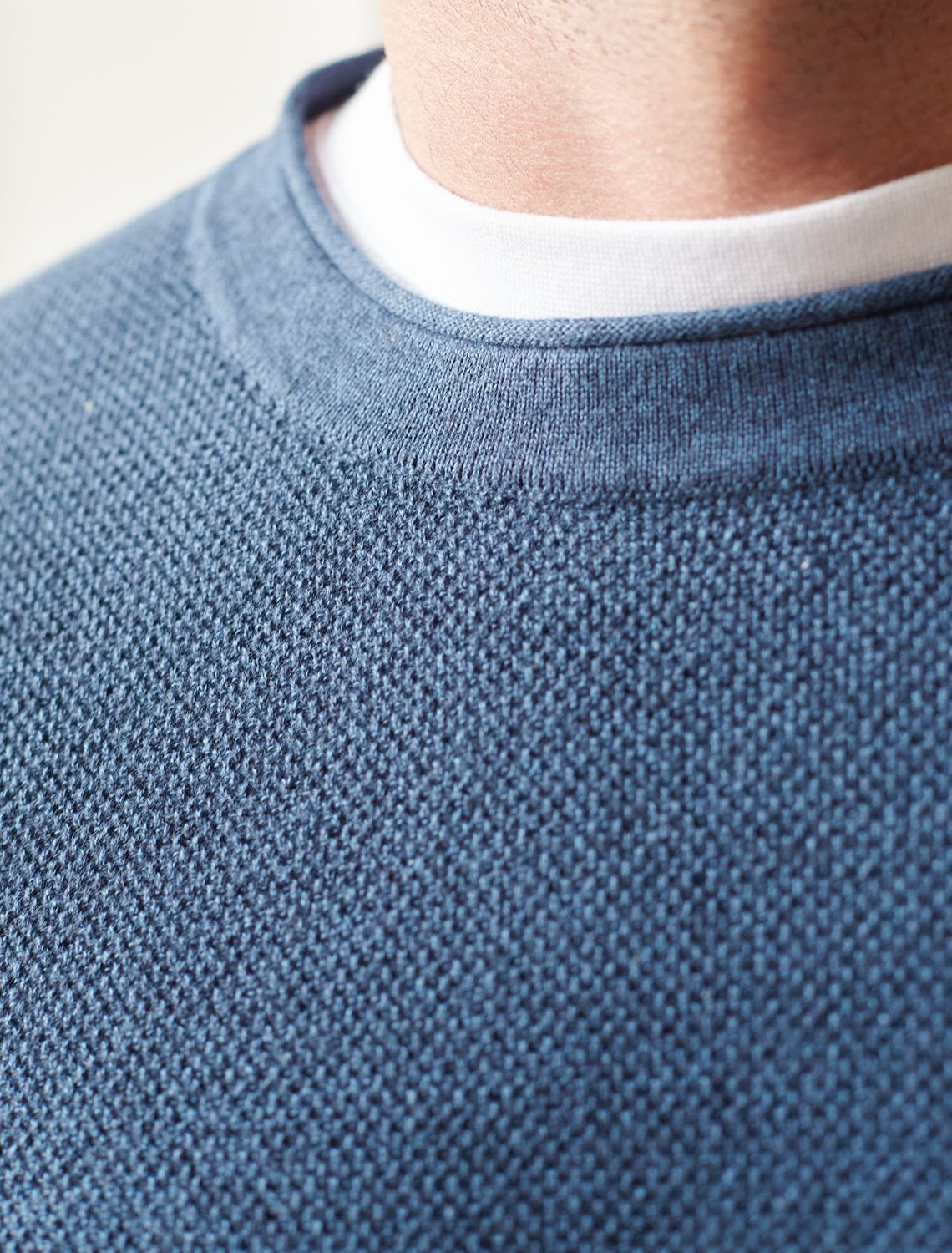 Джемпер фактурной вязки из хлопка с нейлоном U39.015 светло-синий меланж