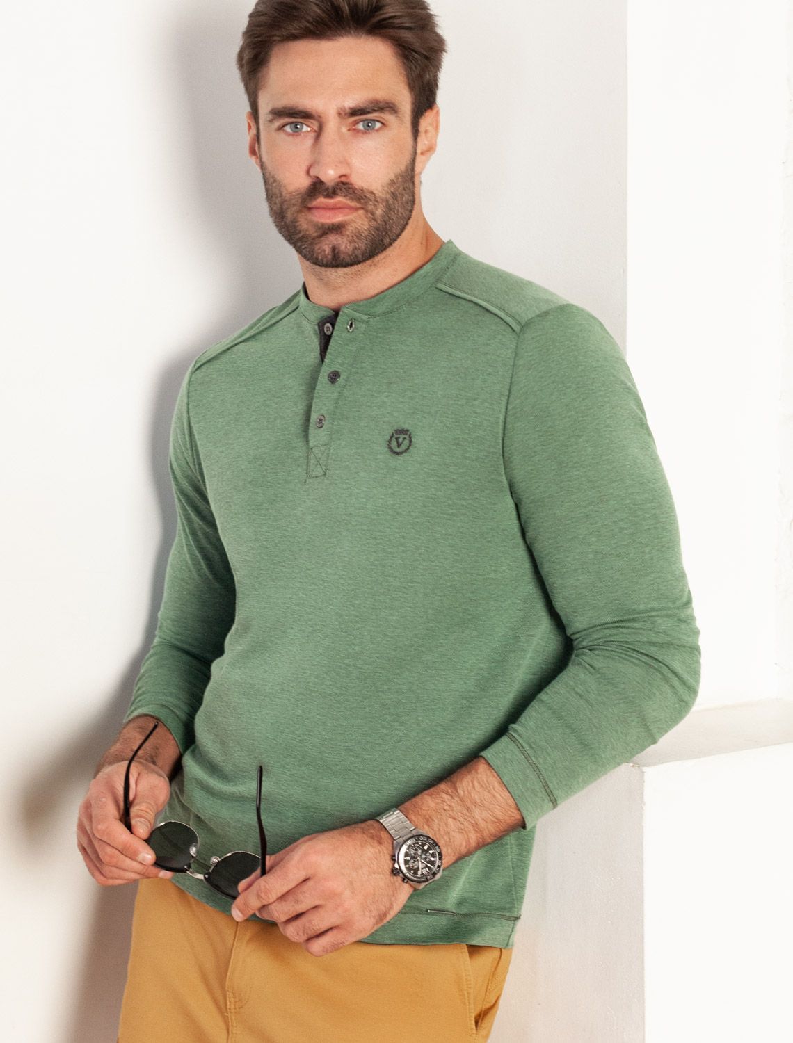 Джемпер хенли из полотна пике с меланжевым плетением с эластаном