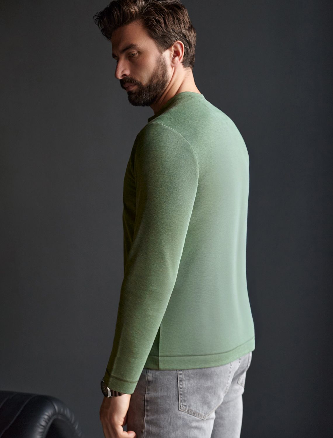 Джемпер хенли цвета хаки из полотна пике, состоящий из двух оттенков нити, создающем эффект меланж. Мягкая и дышащая ткань обеспечивает комфорт в течение всего дня, позволяя коже дышать и поддерживать оптимальную воздухопроницаемость. Материал тянется, обеспечивает долговечность и сохраняет презентабельный внешний вид даже после многократных стирок.