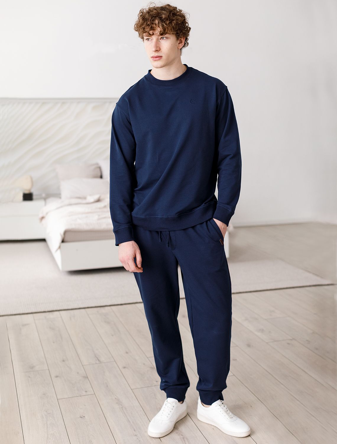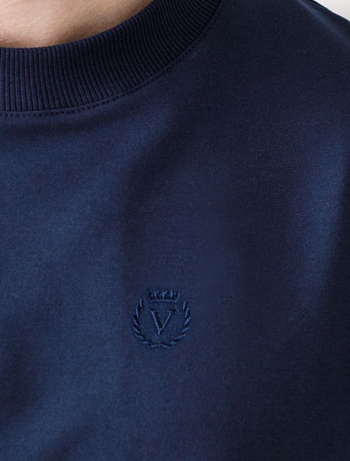Джемпер с круглым воротом выполнен из премиального эластичного футера двухнитки. Свободный силуэт не сковывает движений. Модель дополнена вышивкой с фирменным логотипом бренда. Сочетается в костюме с брюками U44.005.