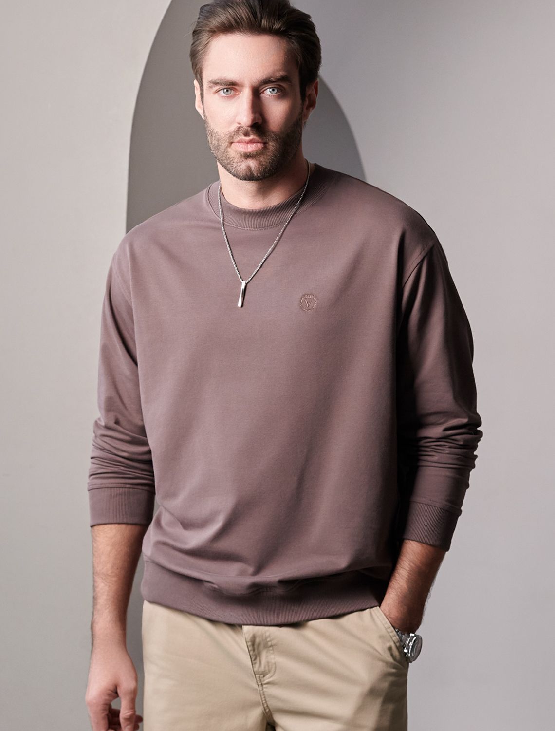 Джемпер с круглым воротом выполнен из премиального эластичного футера двухнитки. Свободный силуэт не сковывает движений. Модель дополнена вышивкой с фирменным логотипом бренда. кофейный