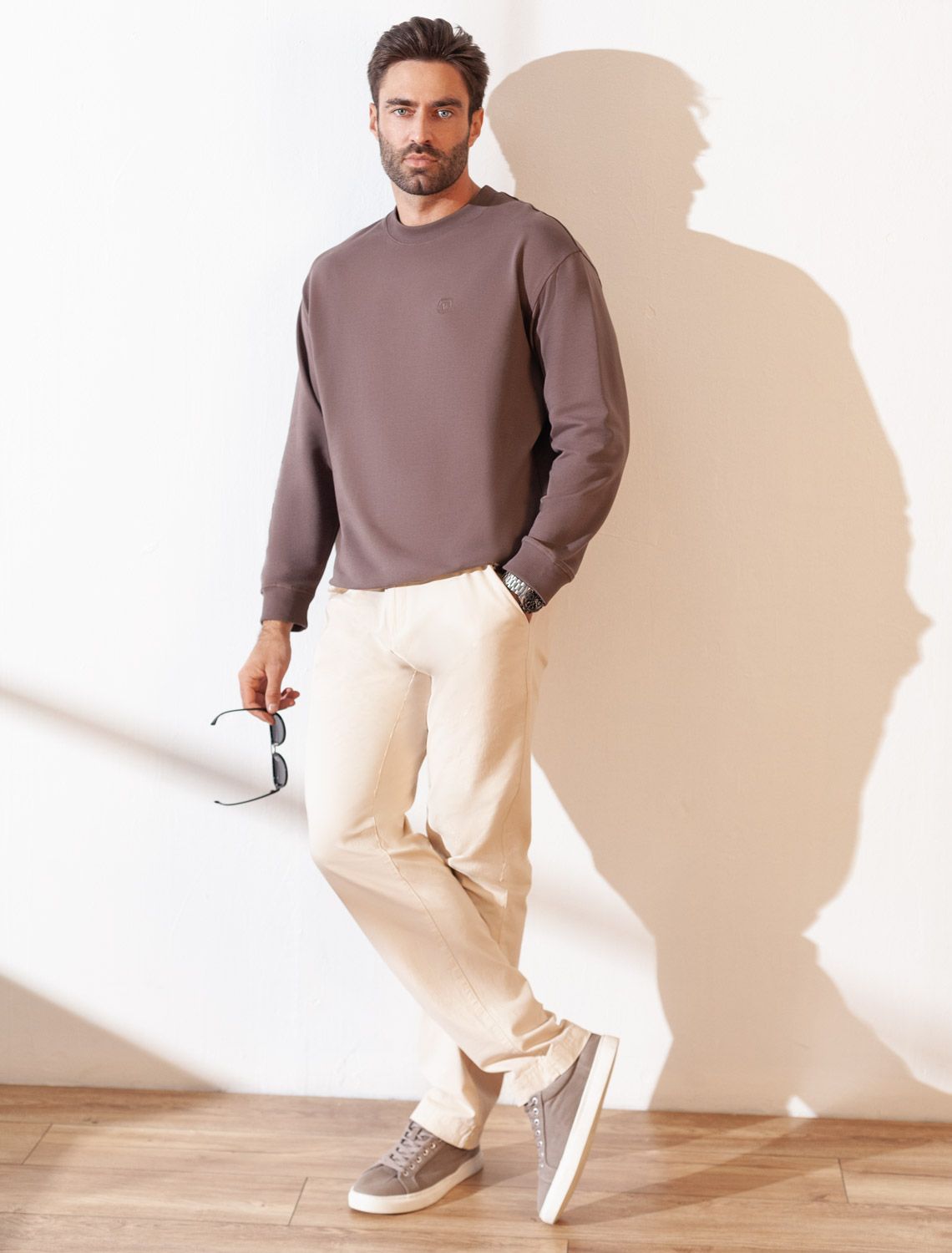 Джемпер с круглым воротом выполнен из премиального эластичного футера двухнитки. Свободный силуэт не сковывает движений. Модель дополнена вышивкой с фирменным логотипом бренда.