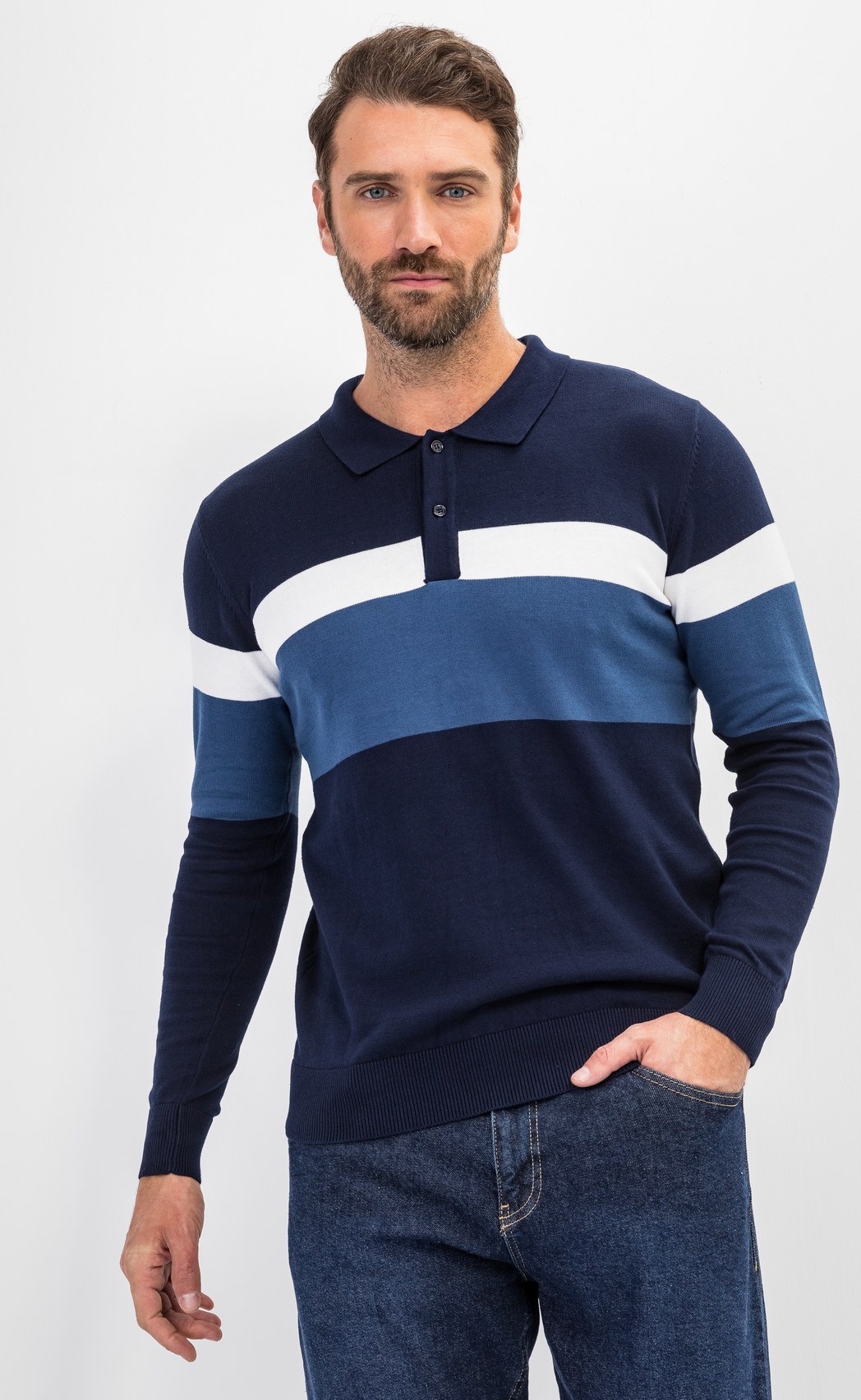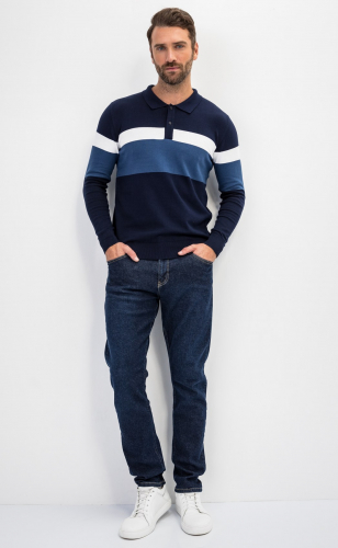 Джемпер мужской от бренда Fine Joyce темно-синего цвета с отложным воротником и планкой на пуговицах. Джемпер из пряжи хлопок, воротник отложной на пуговицах. Джемпер поло мужской дополнен контрастными полосками на груди, воротник отложной, планка на пуговицах, внутренняя сторона воротника выполнена в темном цвете, что очень практично. Модель комфортного прямого кроя из приятного на ощупь трикотажного полотна с антипиллинговым эффектом (не образуются катышки), не линяет, долгое время не теряет внешний вид, если стирать при температуре 30С. Свитер прекрасно сидит по фигуре, а трикотаж (состав 100% хлопок) дарит максимальный комфорт. Купить мужской джемпер оптом можно напрямую от производителя, зарагестрировавшись на сайте. В карточке товара Вы найдете размерные характеристики, которые помогут Вам определиться с размером. Fine Joyce динамично развивающийся российский бренд. Fine Joyce — высокое качество по оптимальной цене!