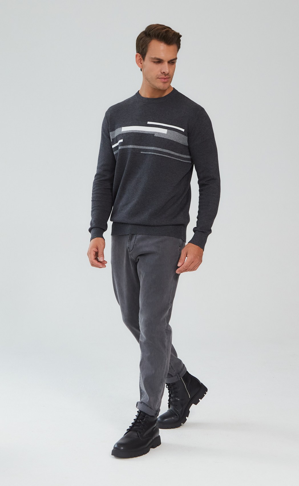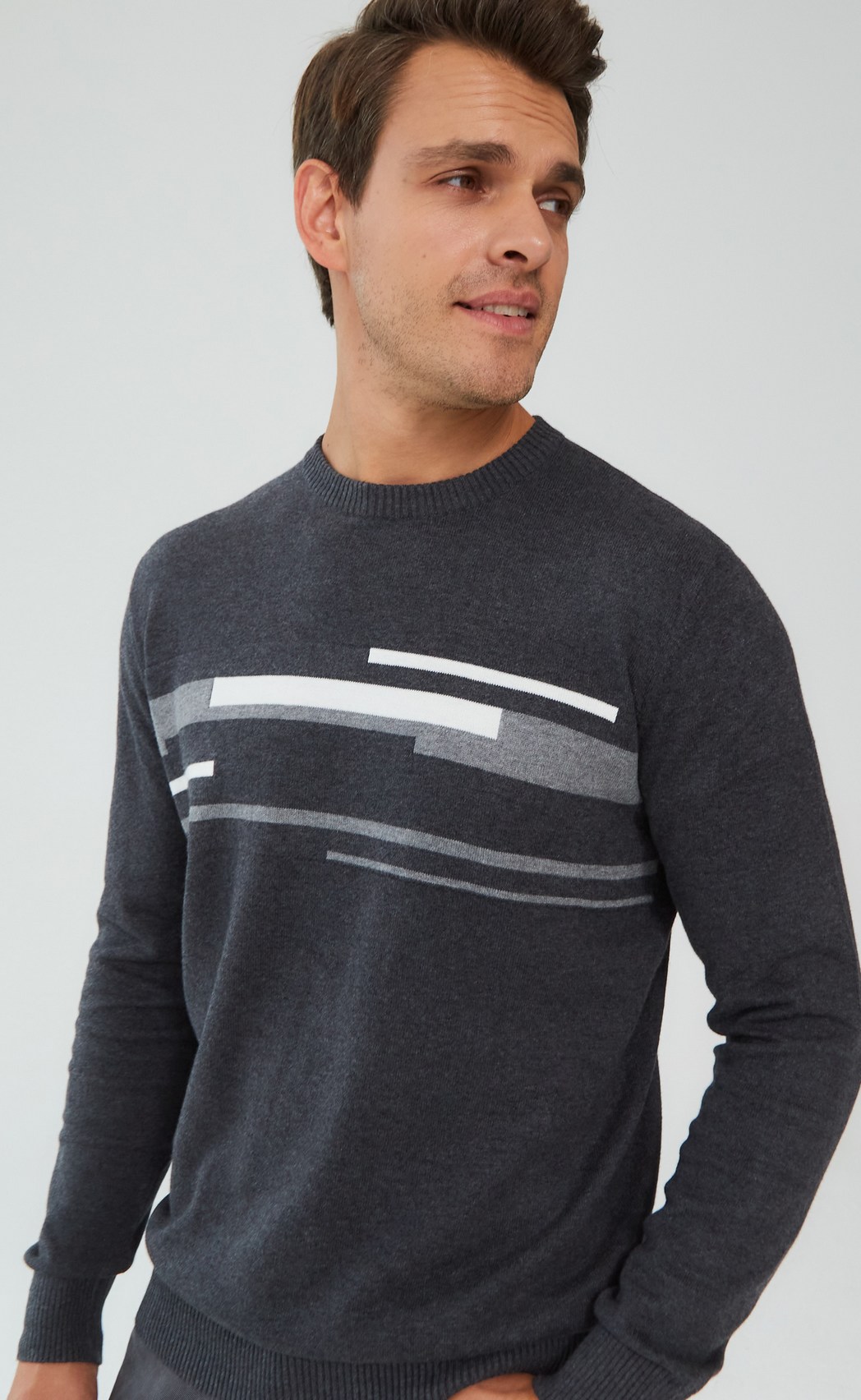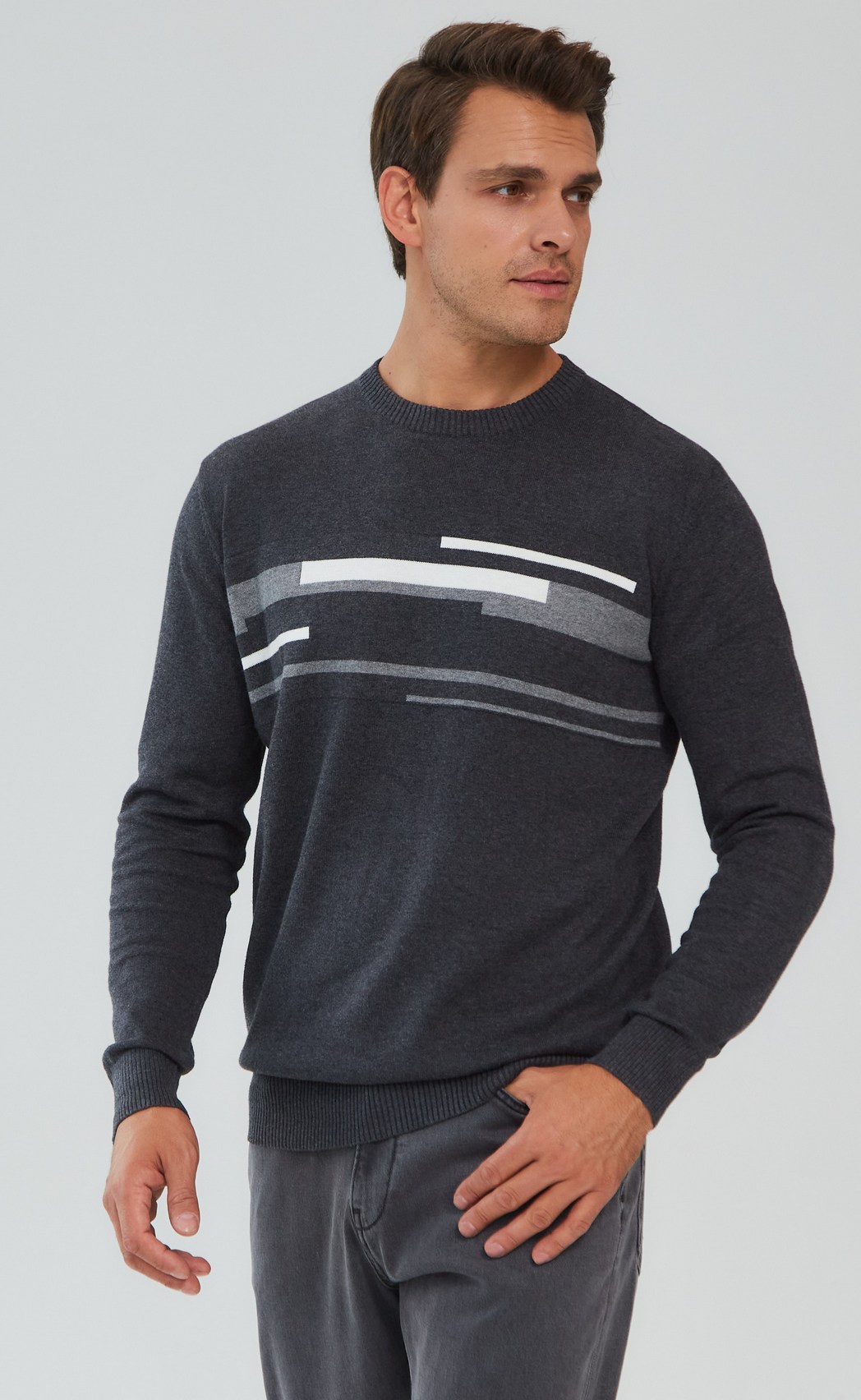 Наименование для сайта: Джемпер мужской с полосками F121-15-2067 темно-серый меланж