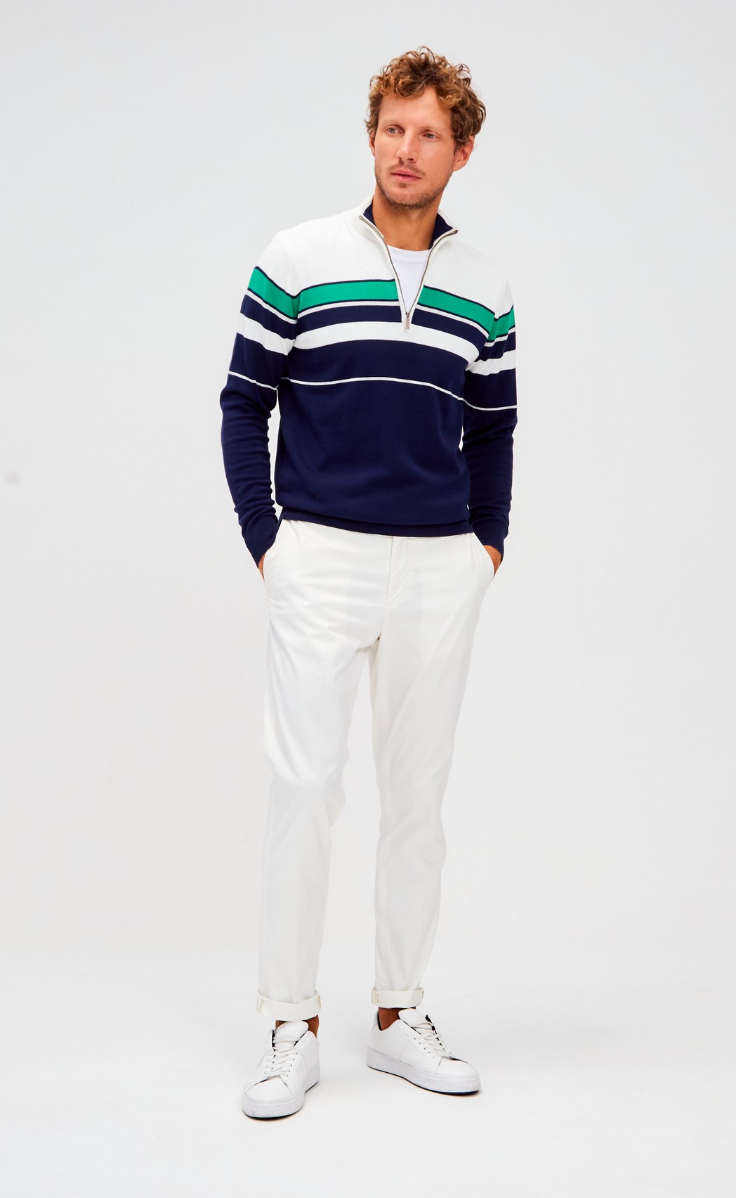 Джемпер мужской с воротом на молнии F221-15-1747 сине-зелёный