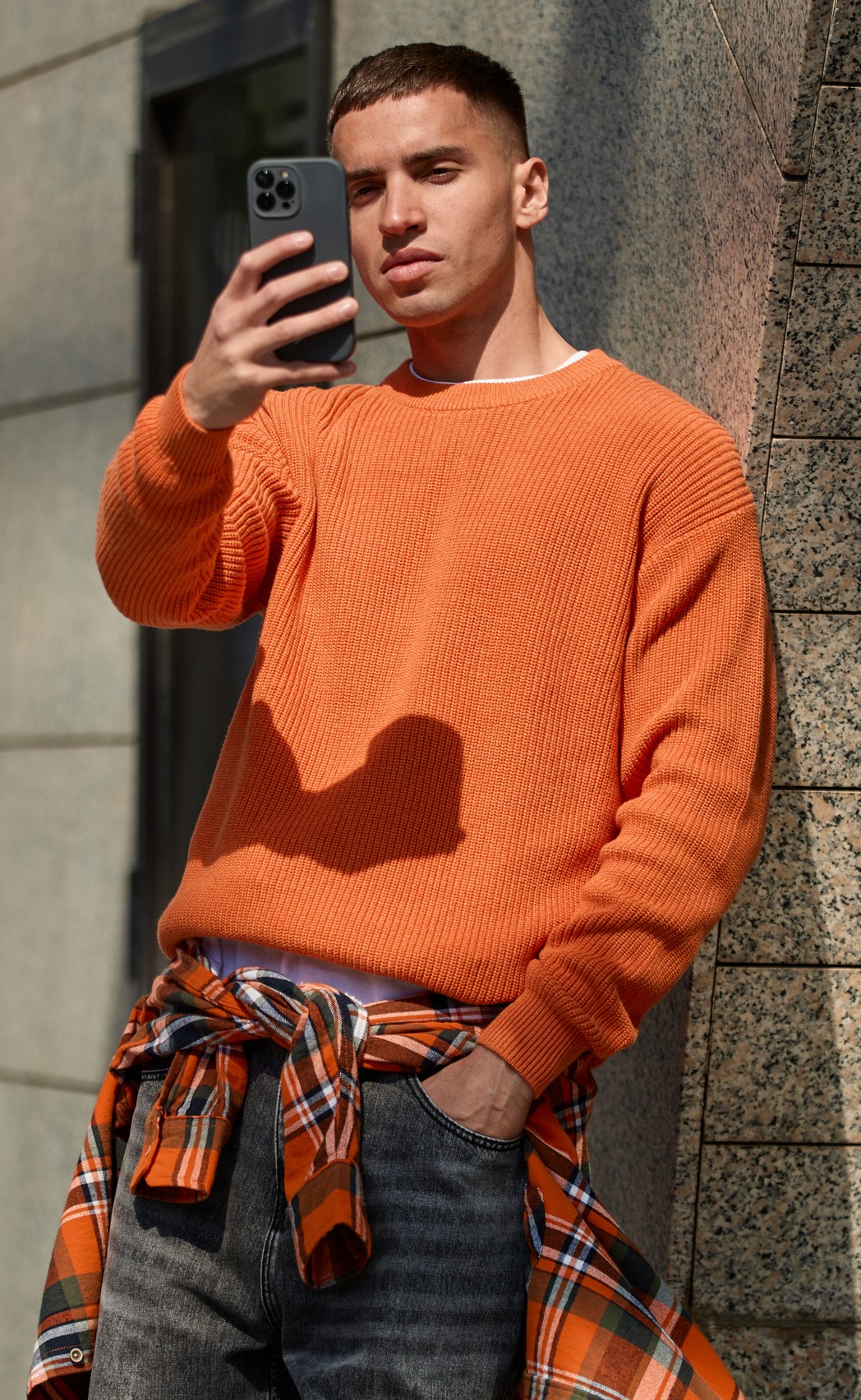 Наименование для сайта: Джемпер мужской вязаный P321-15612 оранжевый