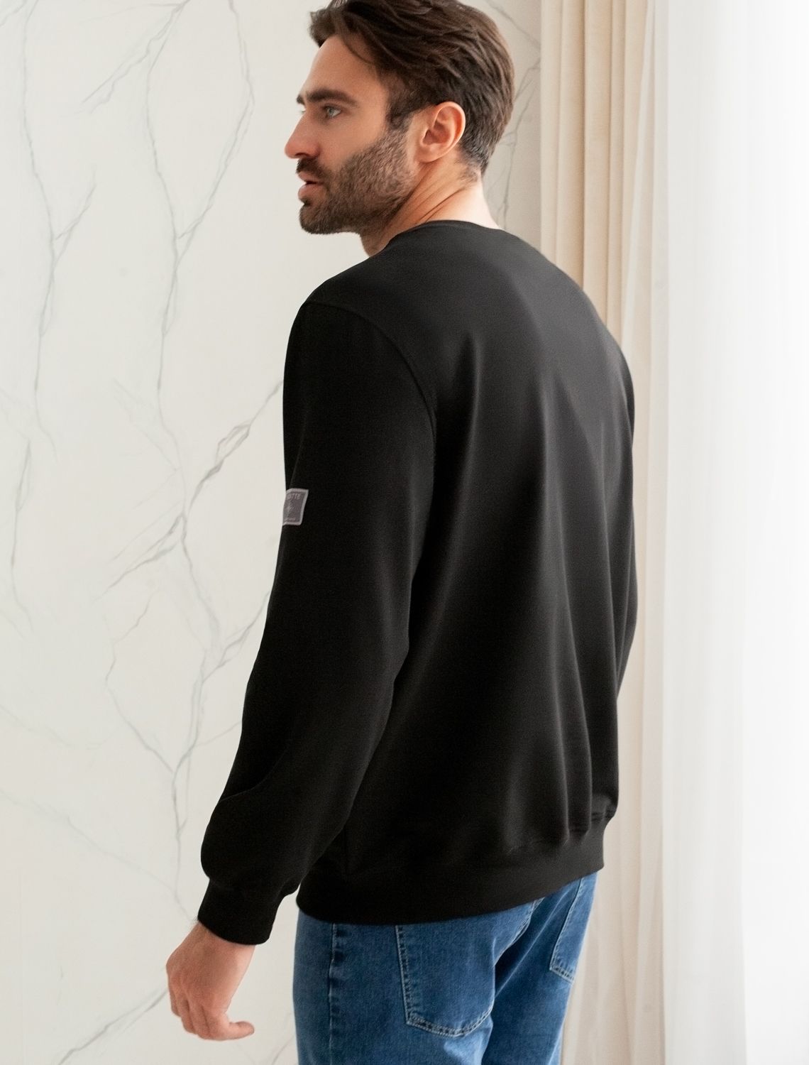 Джемпер с авторским принтом из легкого футера U49.014 черный