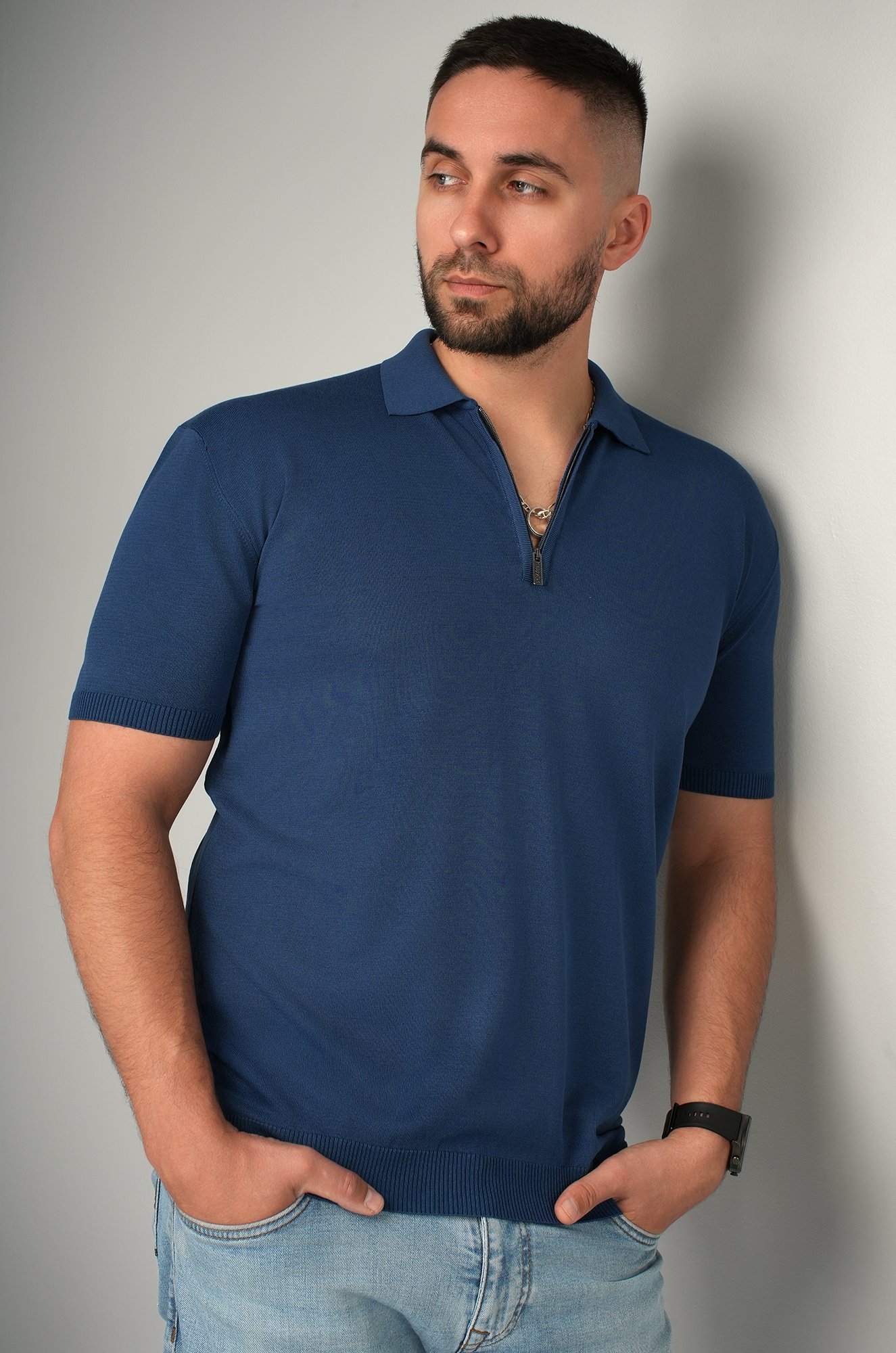 Наслаждайтесь безупречным стилем! Мужс..показатькая футболка поло базового синего цвета — прекрасный выбор для стильного летнего образа, который объединяет элегантность и практичность. Однотонное поло имеет классический крой и ворот с застежкой на молнию.
