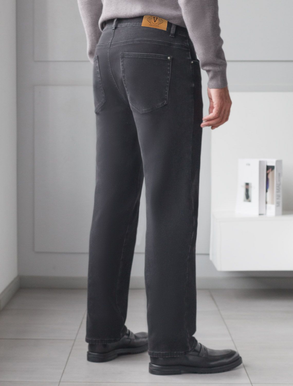 Джинсы утепленные прямые из эластичного денима с мягким флисом U54.008 черный