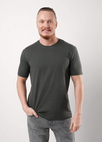 Фуфайка с коротким рукавом среднего объема, круглым вырезом горловины, которая оформлена обтачкой из рибаны. Плотность:145-150 гр/м2