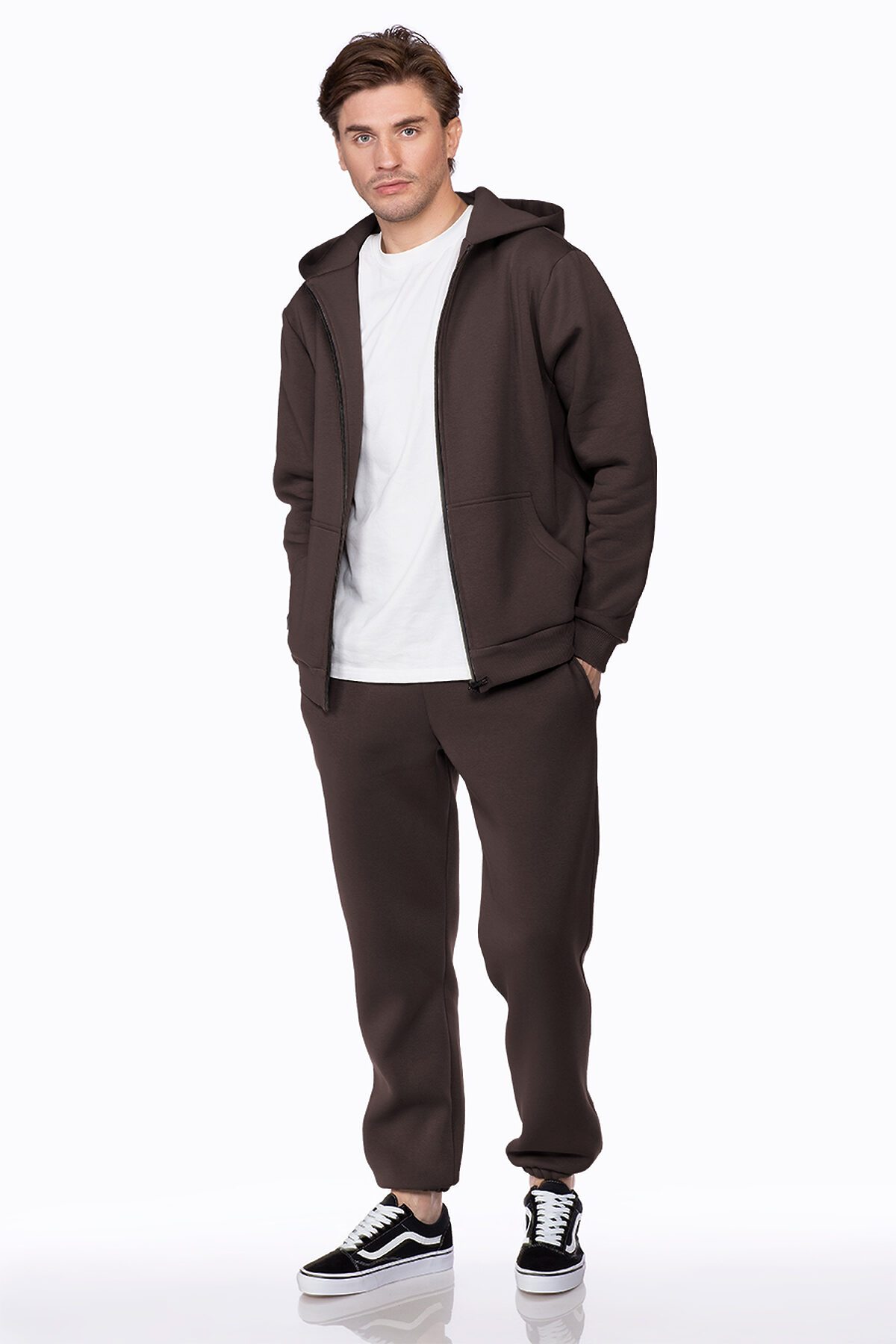 Универсальные трикотажные брюки из высококачественного хлопкового полотна премиум класса компакт пенье - футер 3х-ниткас начесом. Идеальны в демисезон и зимней период. Пояс выполнен из эластичного фактурного материала, низ брюк на резинке. Удобные боковые карманы.