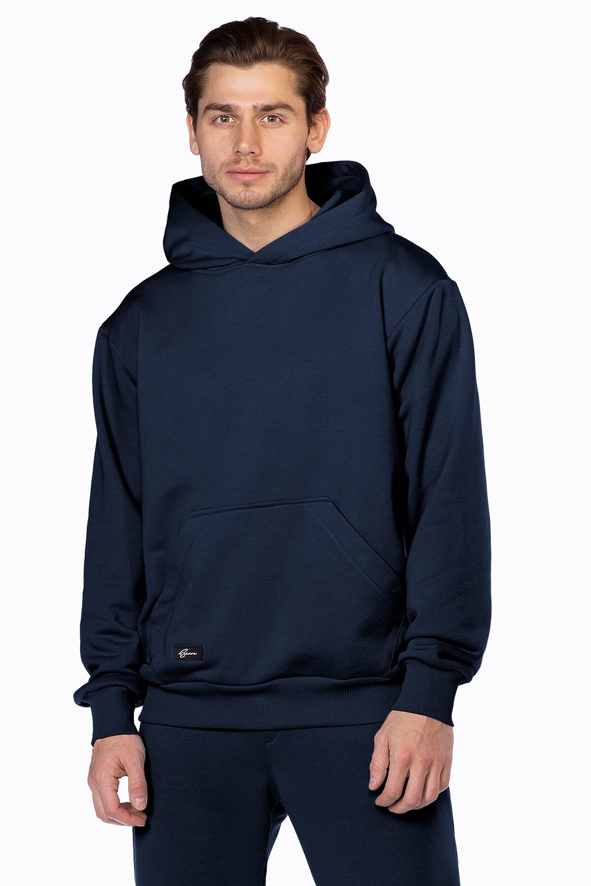 Модель свободного кроя оверсайз, с втачным рукавом. Худи c объемным капюшоном и геометричным карманом кенгуру, деокорированным именным шевроном с логотипом Ezanna. Манжет и низ изделия выполнен из качественного эластичного материала в рубчик.