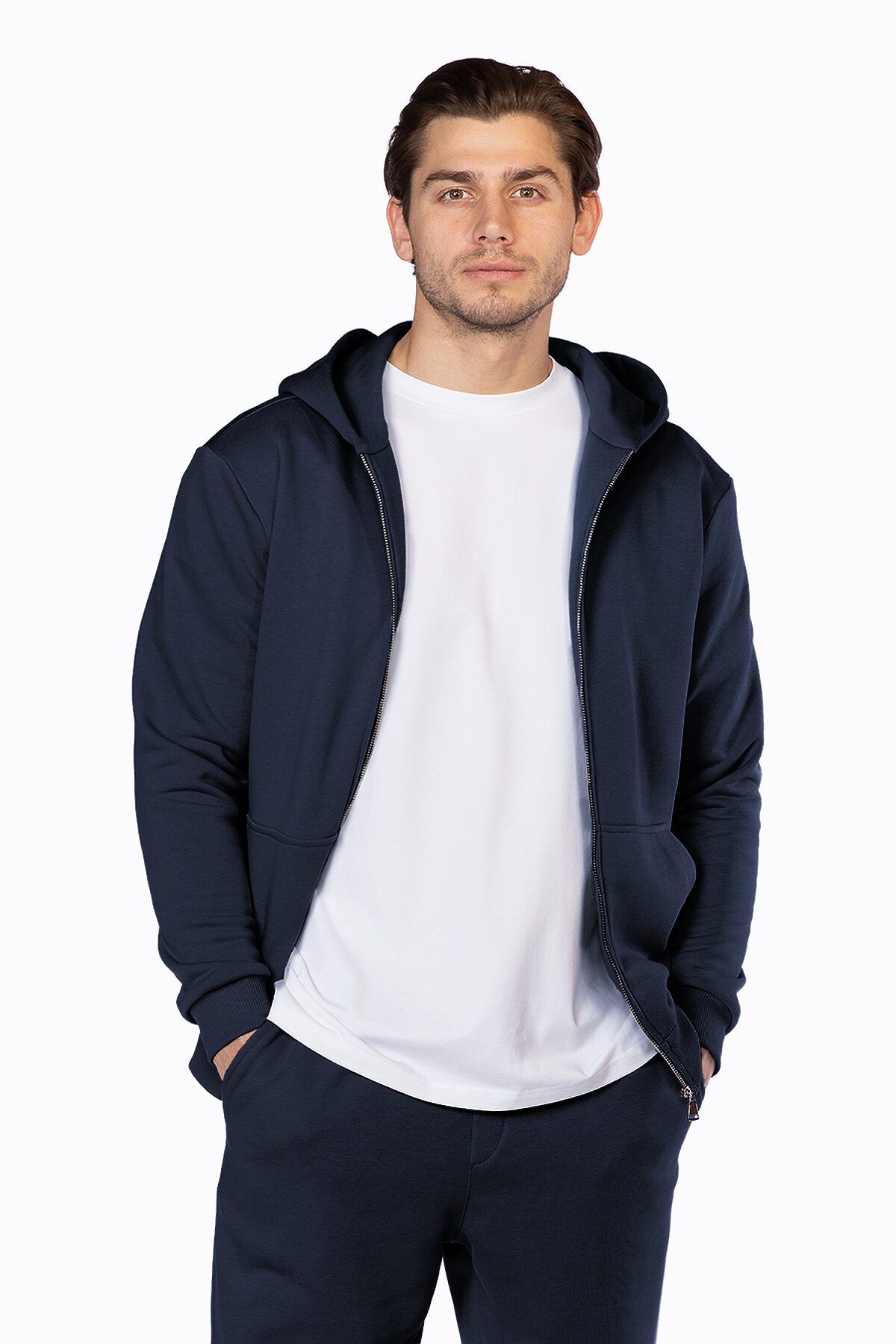 Толстовка прямого кроя, с втачным рукавом и объемным капюшоном, с застежкой на металлическую молнию. Модель с карманом кенгуру, декорированным именным шевроном с логотипом Ezanna. Манжет и низ изделия выполнен из качественного эластичного материала в рубчик.