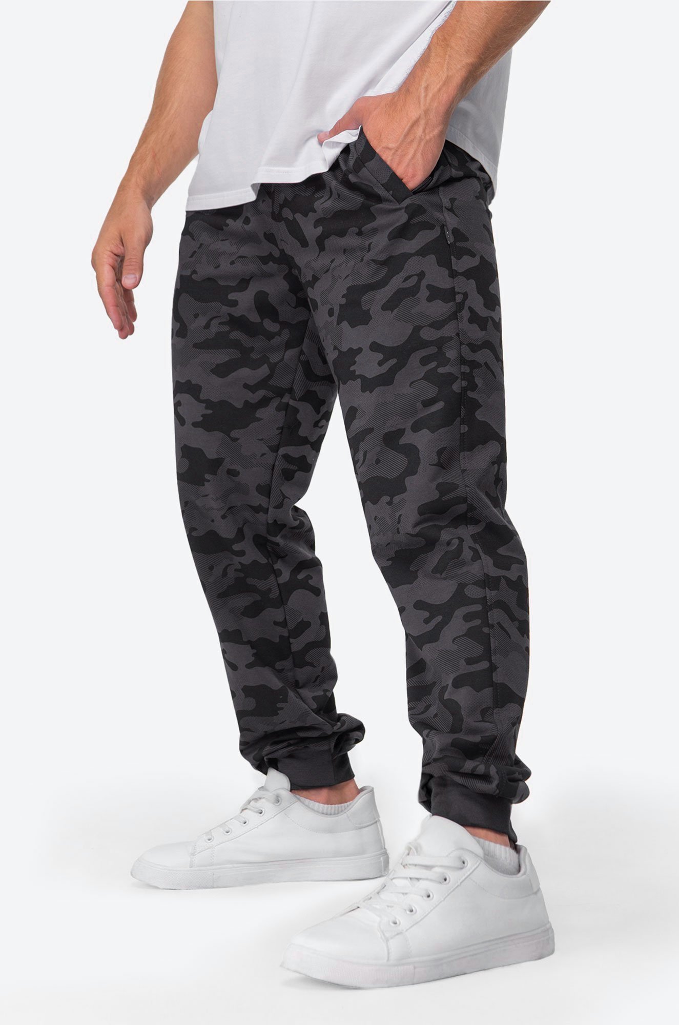 Благодаря добавлению полиэстера в ткань брюки из футера двухнитки мягкие и прочные, что делает их идеальным выбором для активного отдыха, страйкбола и занятий спортом. Спортивные джоггеры выполнены в графитовом цвете с рисунком в стиле милитари.