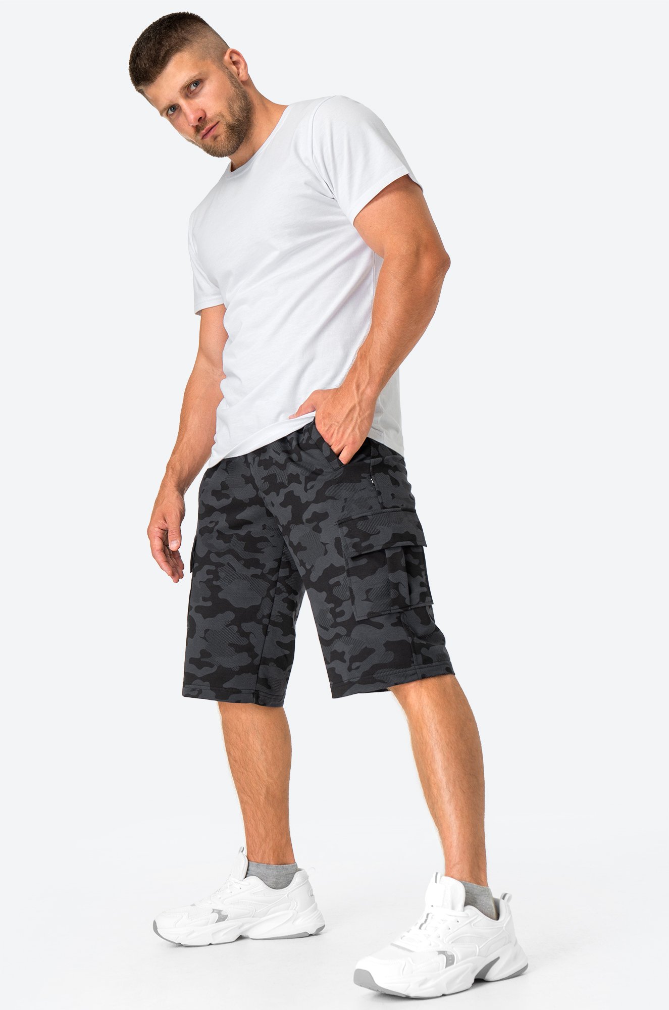 Шорты длиной ниже колен для мужчин помогут создать повседневный образ для прогулок, отдыха на даче или пляже, пикника и туристических походов. Шорты карго из трикотажа идеальны для занятий спортом и путешествий летом. Длинные шорты с камуфляжным рисунком станут отличным решением для создания образа в спортивном и уличном стиле.