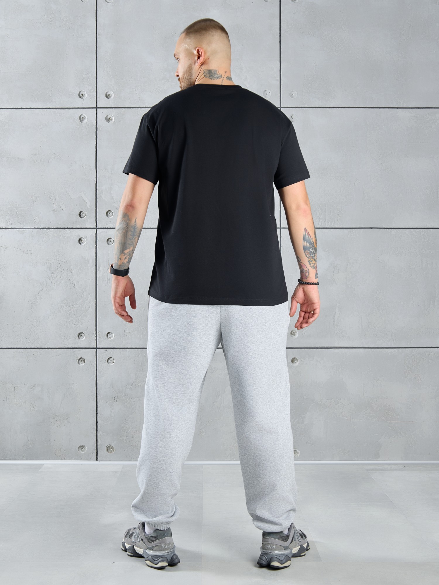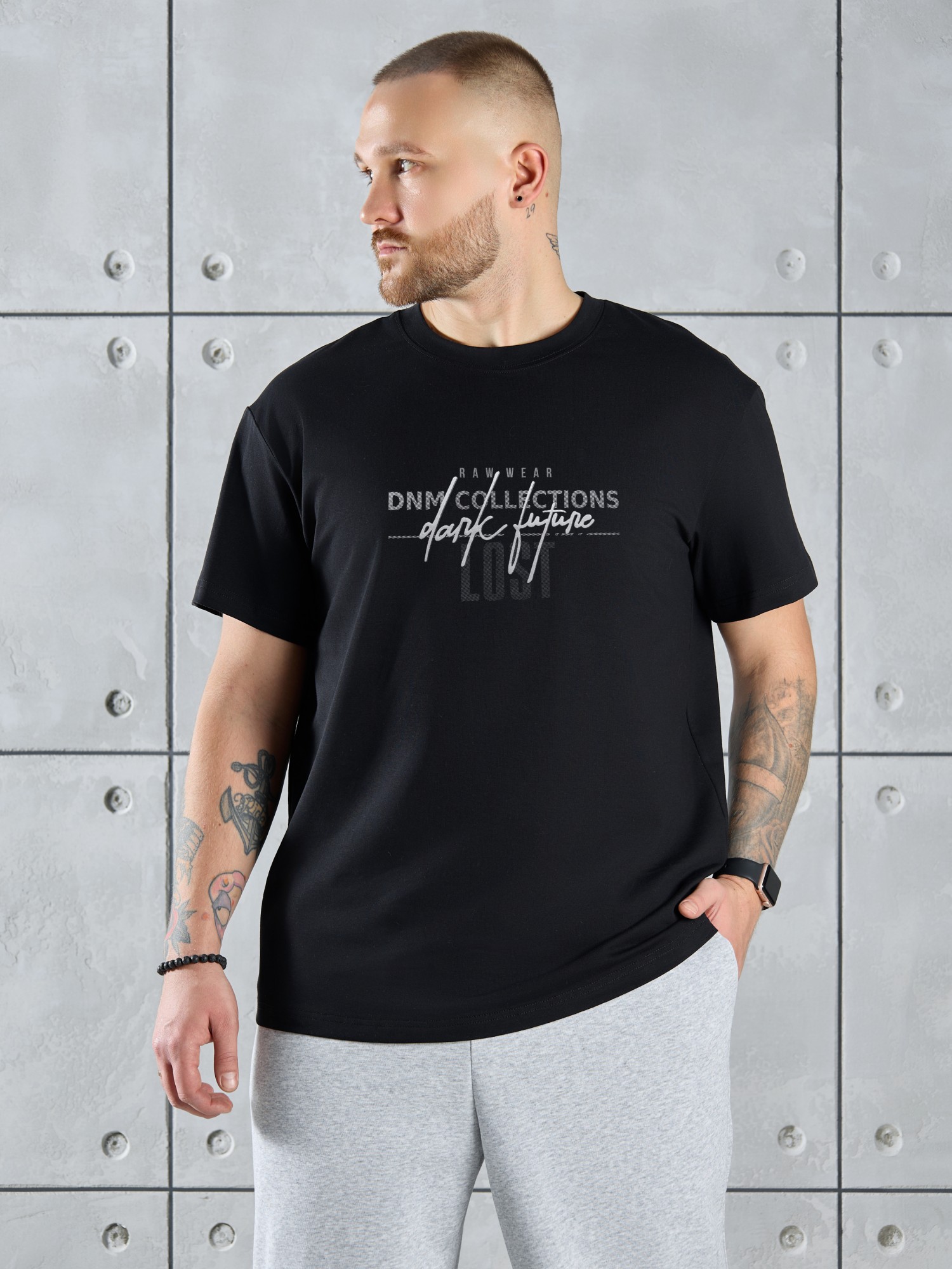Футболка мужская из гладкокрашеного трикотажного полотна "кулирка с лайкрой" классического покроя со слегка удлиненными плечевыми швами, короткими втачными рукавами, и горловиной овальной формы, обработанной втачной планкой. На детали переда - принт, выполненный в технике шелкографии. По горловине настрочена двойная отделочная строчка. Низ рукавов и изделия обработаны подгибкой.