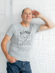 Футболка мужская из кулирки бежевого цвета свободного силуэта с короткими рукавами,круглая горловина обработана бейкой. Изделие выполнено из трикотажа премиального качества - ПЕНЬЕ, с содержанием хлопка более 95%
