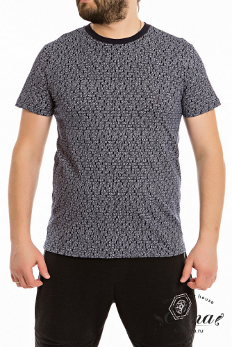 Мужская футболка выполнена из хлопкового полотна с набивным рисунком. Покрой свободный, горловина с круглым вырезом.