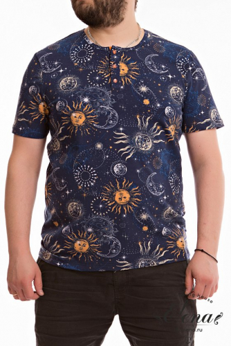 Мужская футболка из хлопкового полотна с набивным рисунком. Крой свободный, горловина с круглым вырезом.