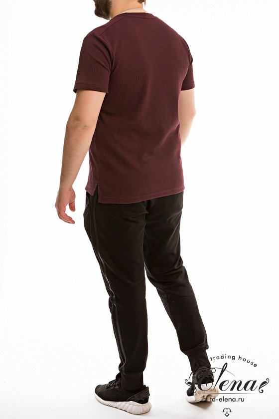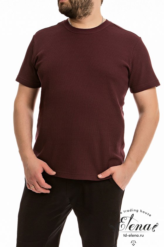 Мужская футболка выполнена из интерлочного полотна с фактурой "вафля". С коротким рукавом и круглым вырезом горловины. По бокам внизу разрезы.