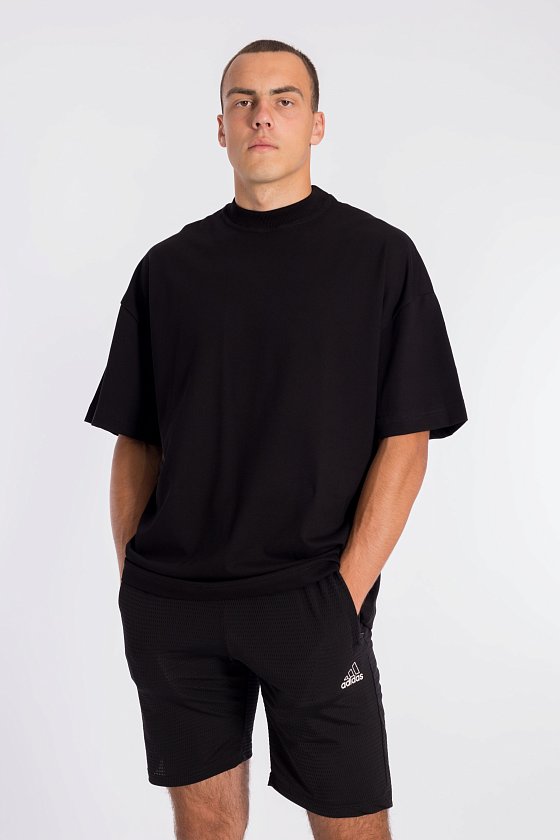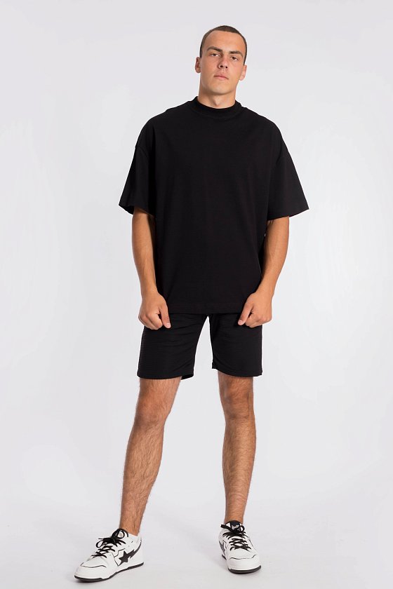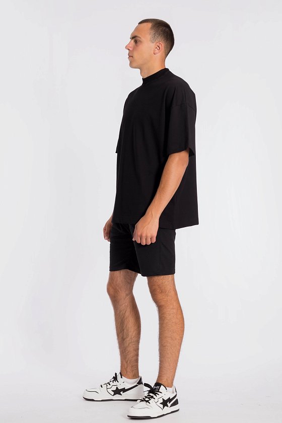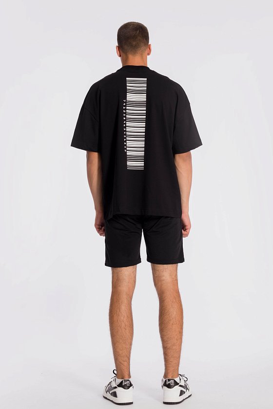 Футболка свободного силуэта выполнена из однотонного полотна "пике". Футболка с коротким рукавом длиной до локтя и притачной планкой по круглому вырезу горловины. На спине расположен оригинальный принт.