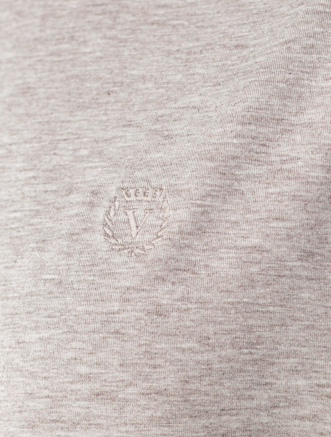 Однотонная футболка выполнена в минималистичном стиле, дополнена аккуратной вышивкой на груди в виде буквы V в тон изделия, а так нашивкой на рукаве из эко-кожи с логотипом VILATTE. Подходит как классический вариант для работы в офисе под пиджак, так и для повседневной носки или занятий спортом. Мягкая ткань приятна к телу, не вызывает дискомфорта и идеально подходит для дома или летних прогулок благодаря короткому рукаву.