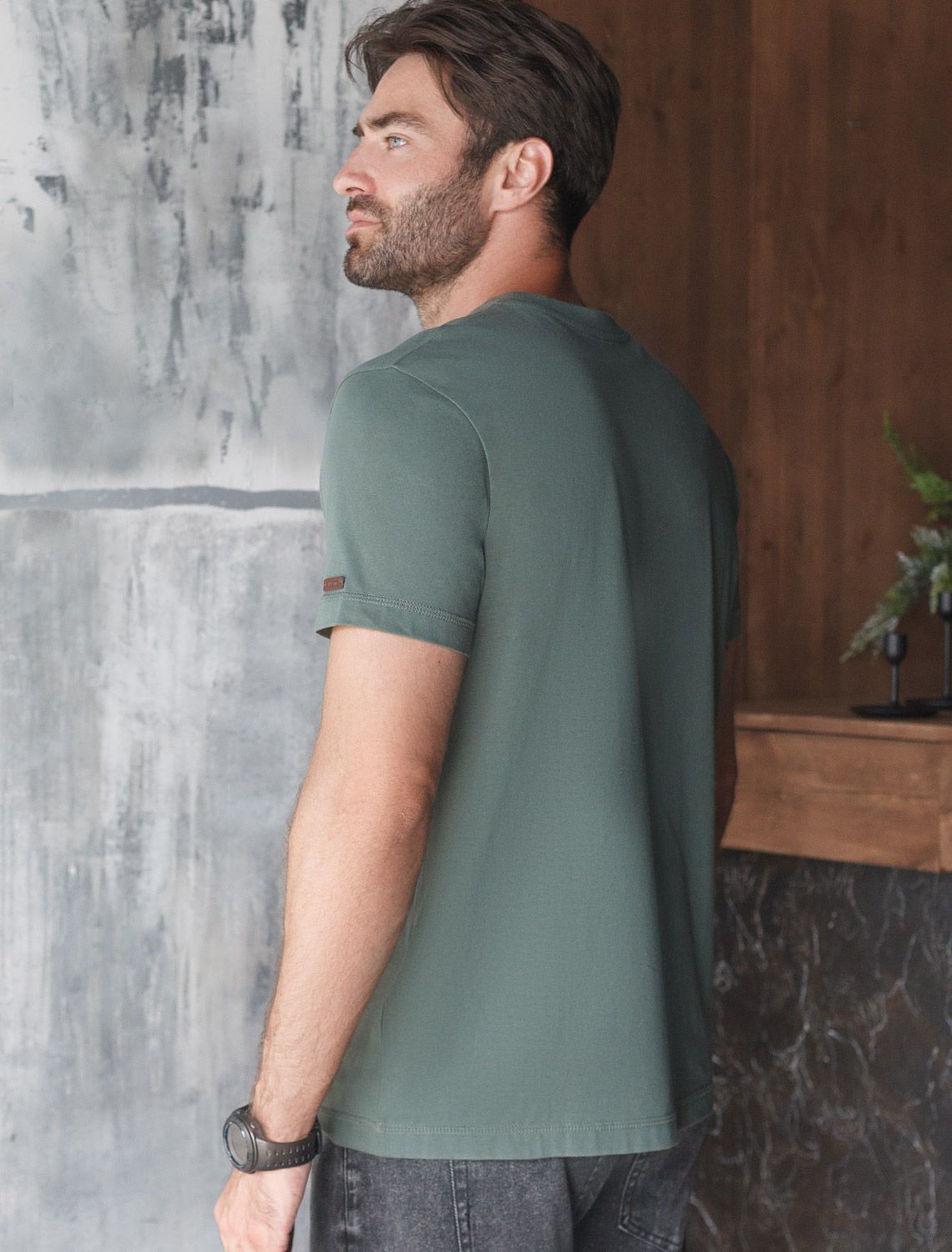 Футболка базовая полуприлегающая из премиального хлопка с эластаном U49.009 т.оливковый