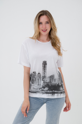 Стильная футболка из мягкой кулирки с оригинальным принтом — универсальный выбор для создания повседневного образа. Материал отлично пропускает воздух и сохраняет форму, а яркий и чёткий принт добавляет индивидуальности вашему гардеробу, делая эту футболку подходящей как для мужчин, так и для женщин, ценящих комфорт и модный дизайн.