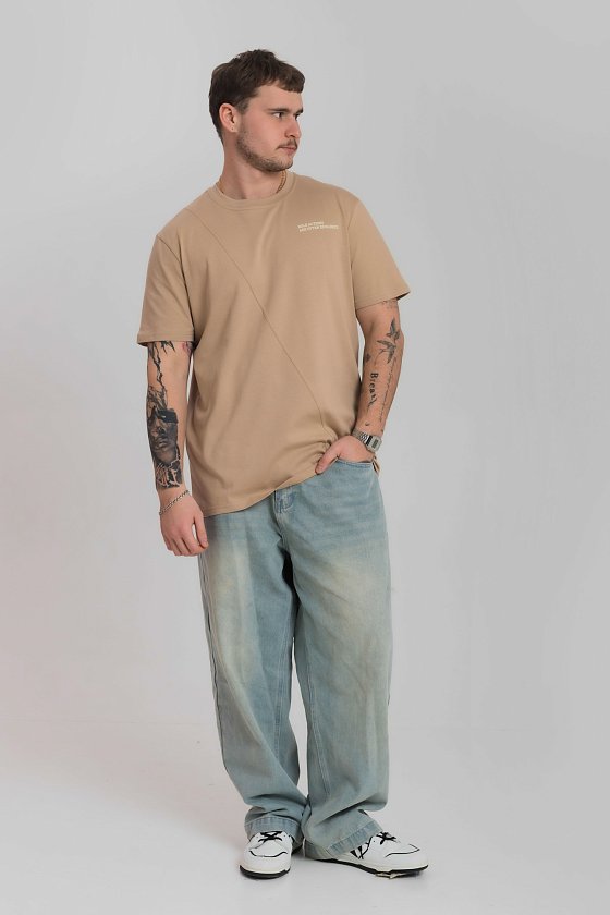 Футболка из кулирки с декоративной отстрочкой и принтом М125059Пе