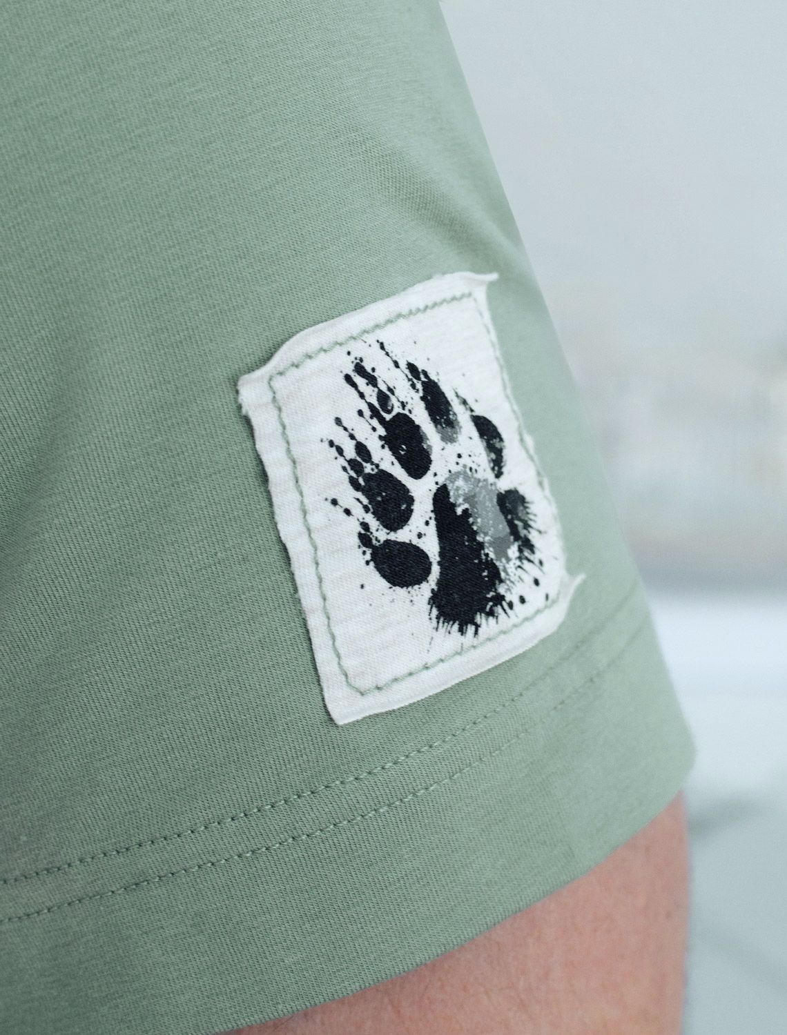 Перевод принта: All good things are wild and free - все лучшее ждет в диких местах. Футболка выполнена из премиального хлопка с эластаном. Авторский принт нанесен фактурными красками с устойчивым покрытием. Изделие комфортно сидит по фигуре, не сковывая движений. За счет среднего объема, хорошо подойдет как первый слой под пиджак, кардиган или бомбер. На рукаве нашивка из эко-кожи с логотипом бренда.