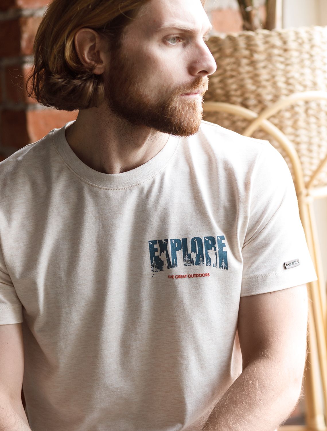 Ст.цена 1090р Футболка из премиального хлопка с авторским принтом U49.026 овсяный_explore