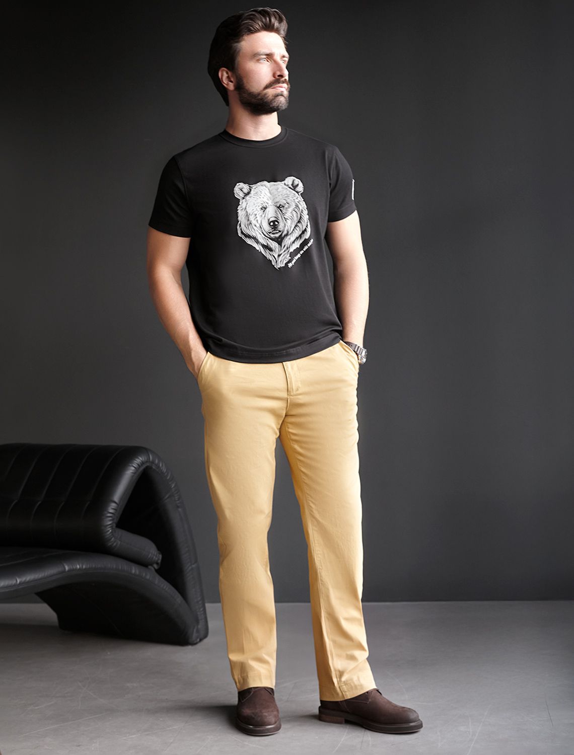 Футболка из премиального хлопка с авторским принтом U49.045 черный_медведь