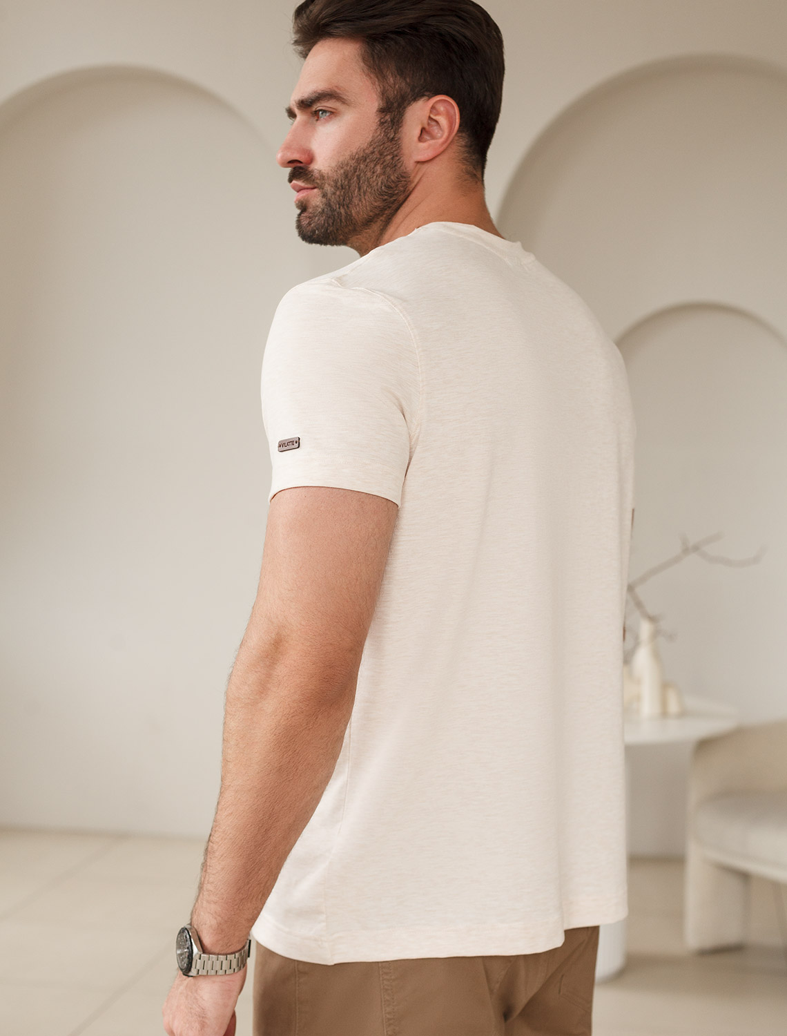Футболка из премиального хлопка с авторским принтом U49.045 овсяный меланж_горы