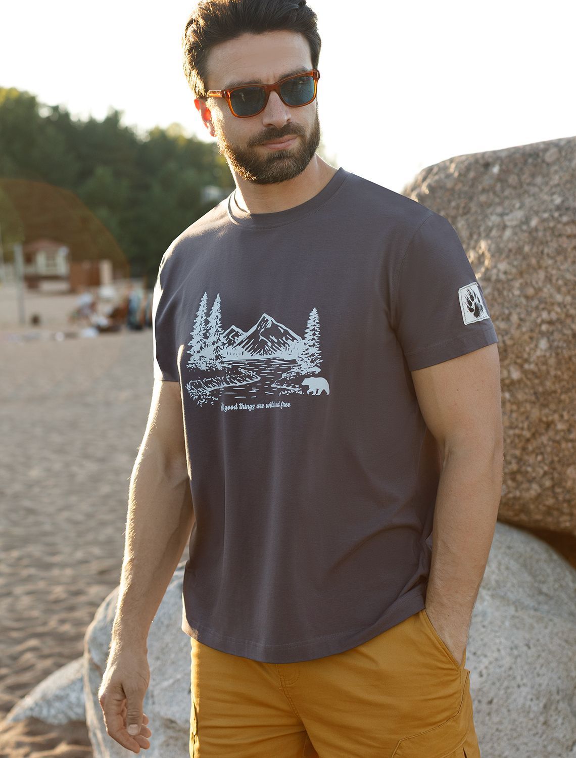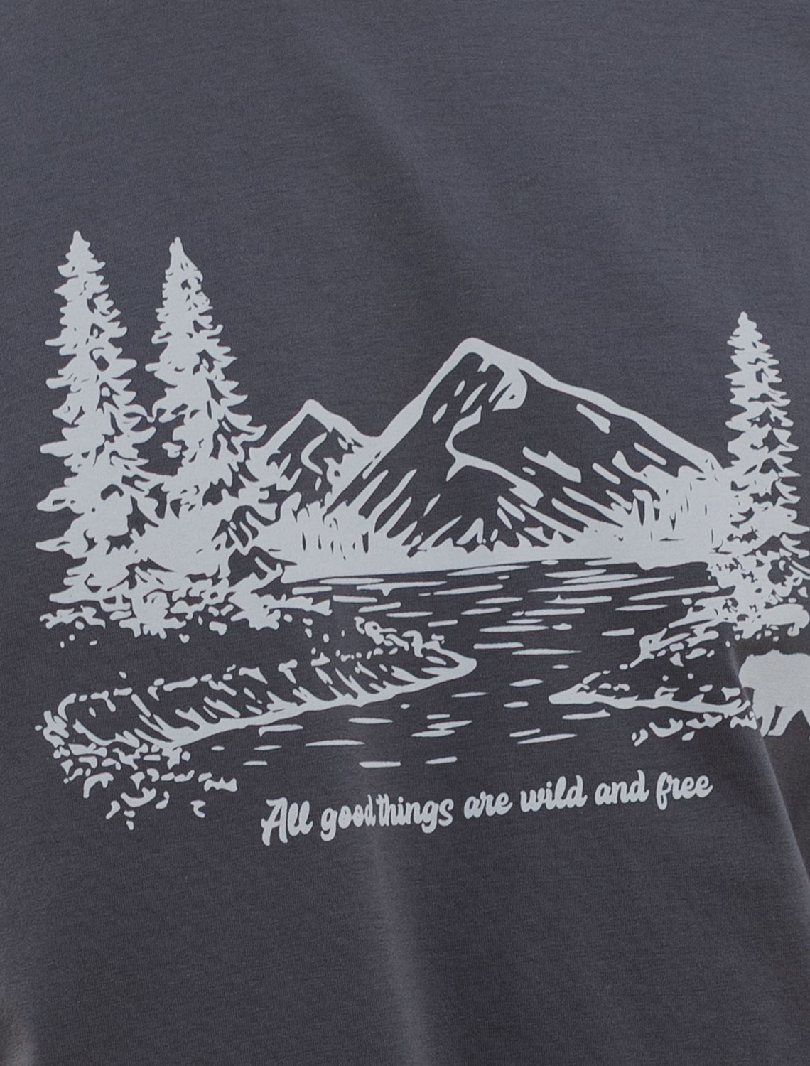 Перевод принта: All good things are wild and free - все лучшее ждет в диких местах. Футболка выполнена из премиального хлопка с эластаном. Авторский принт нанесен фактурными красками с устойчивым покрытием. Изделие комфортно сидит по фигуре, не сковывая