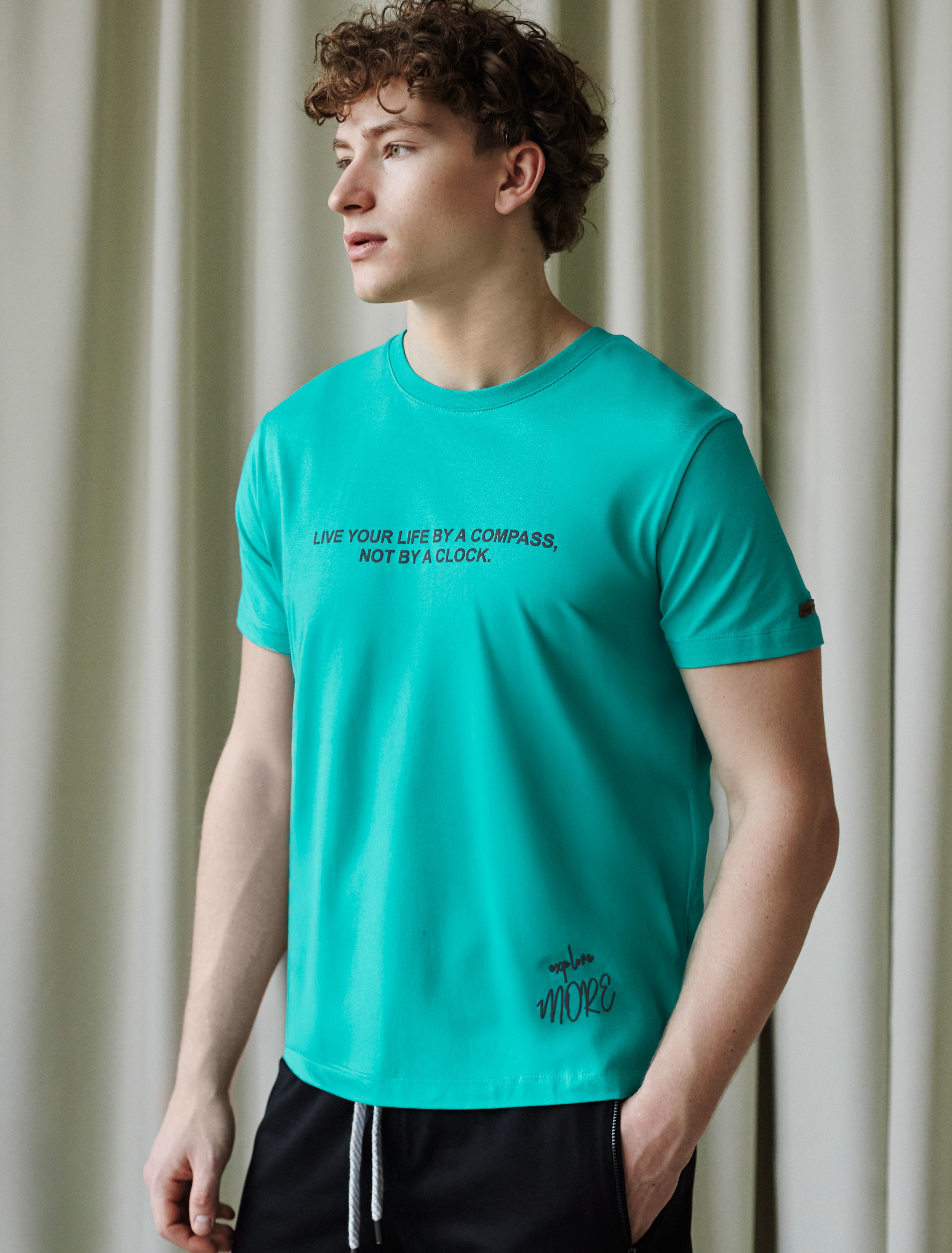 Ст.цена 1190р Футболка из премиального хлопка с авторским принтом U49.026 бирюзовый_compass