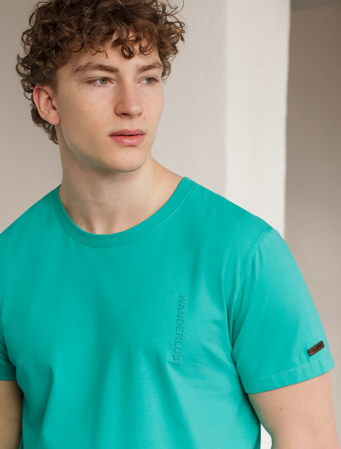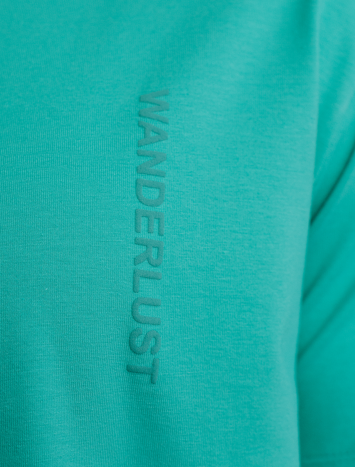 Ст.цена 1190р Футболка из премиального хлопка с авторским принтом U49.026 бирюзовый_wanderlust
