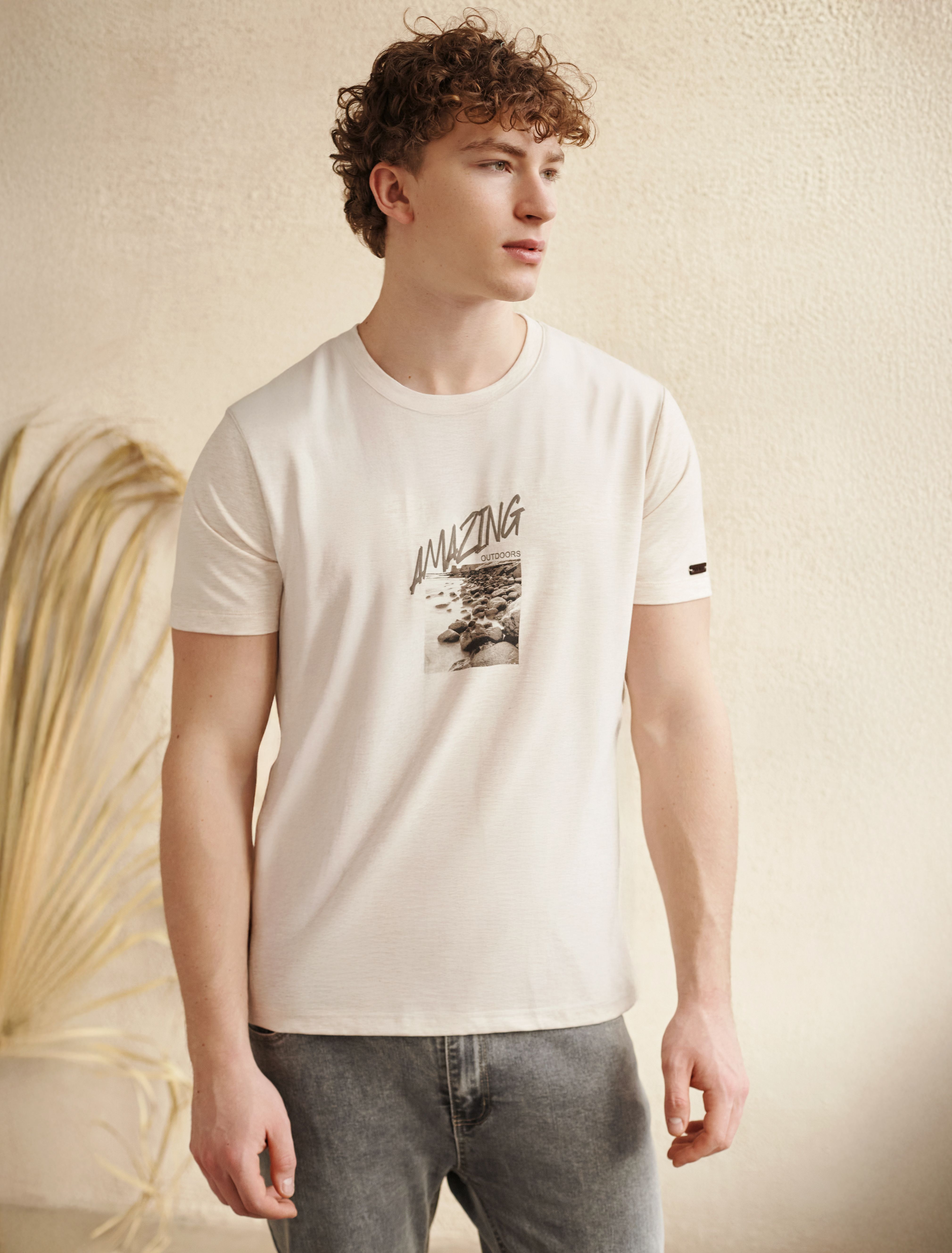 Ст.цена 1190р Футболка из премиального хлопка с авторским принтом U49.026 овсяный_amazing