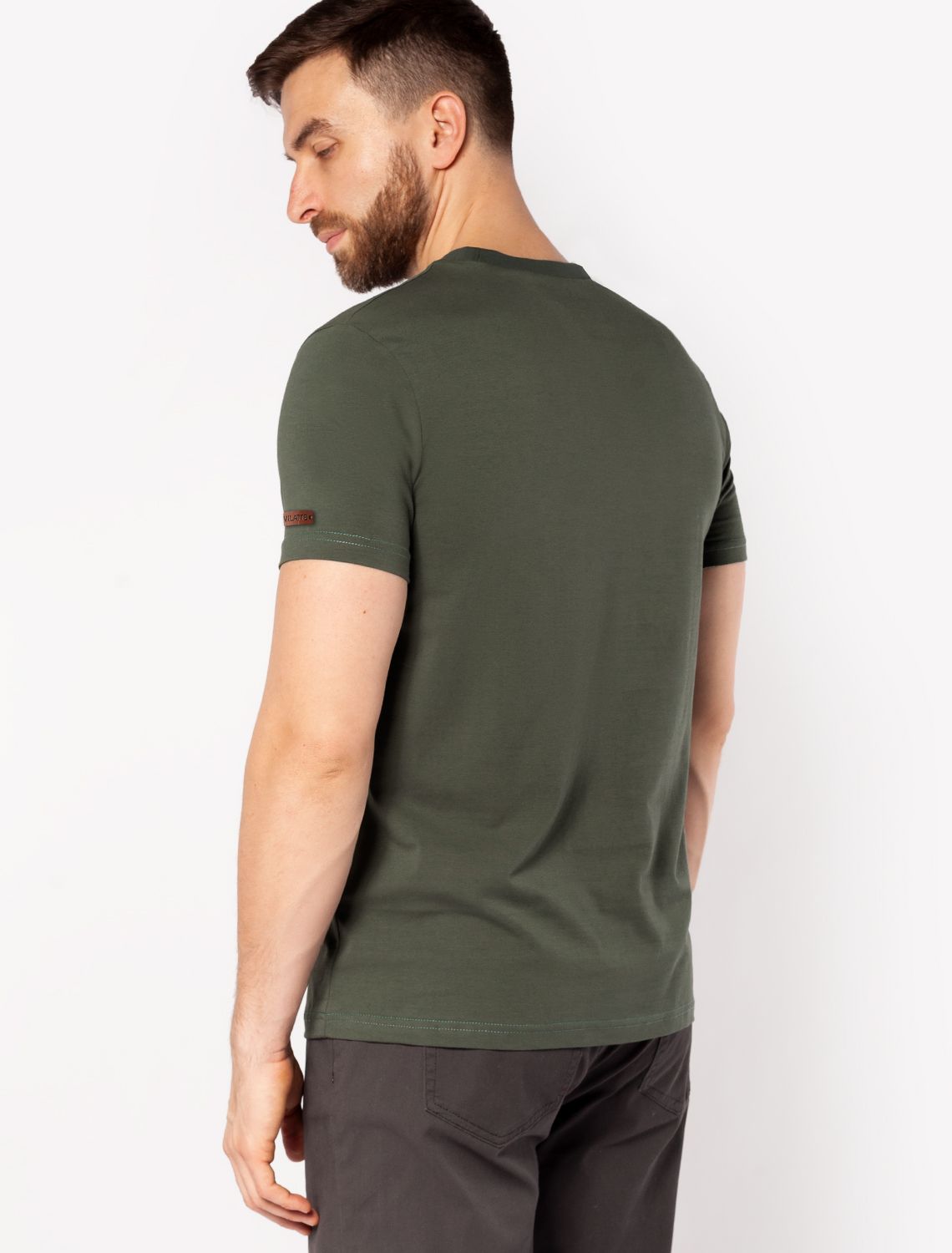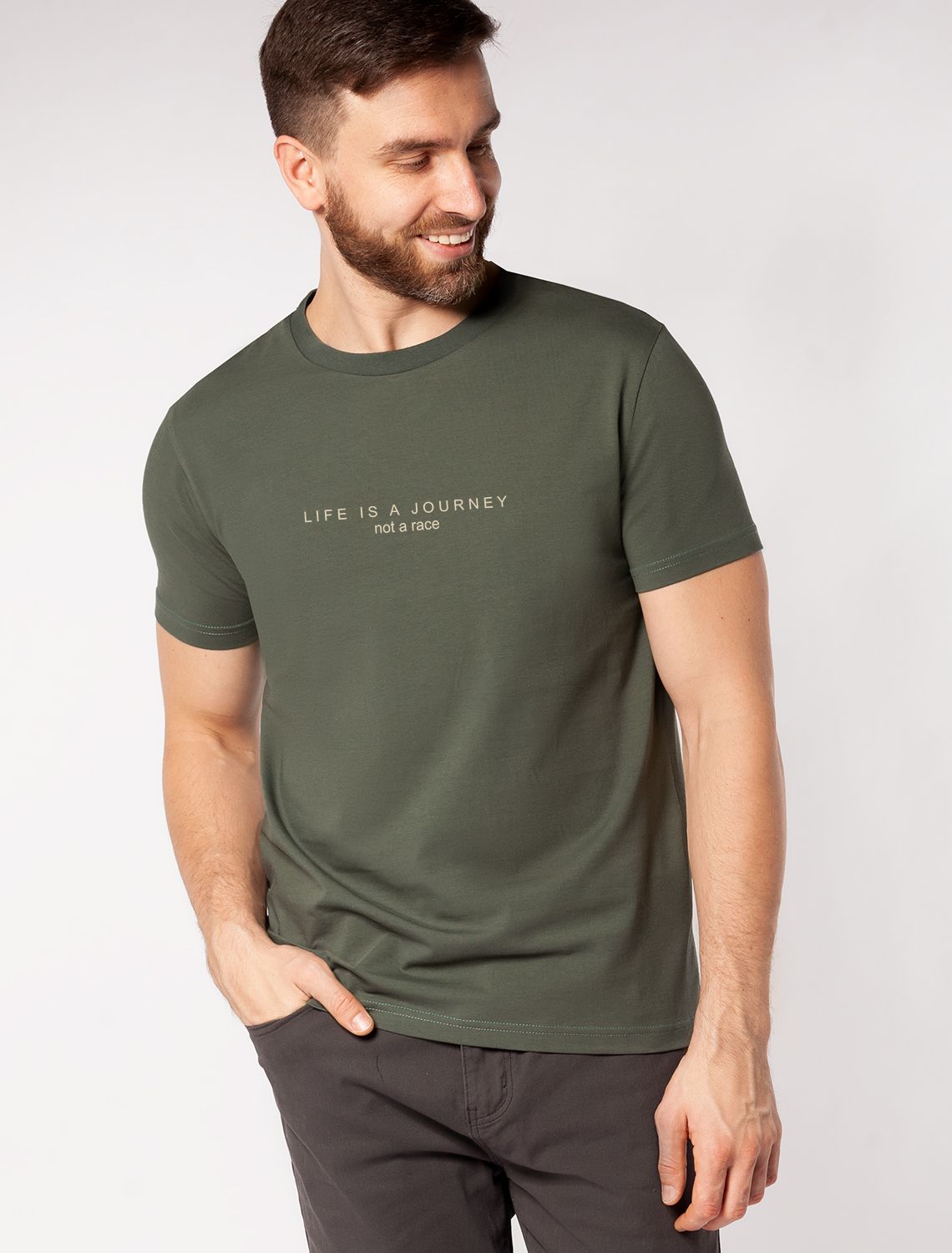 Ст.цена 1190р Футболка из премиального хлопка с авторским принтом U49.026 т.оливковый_journey