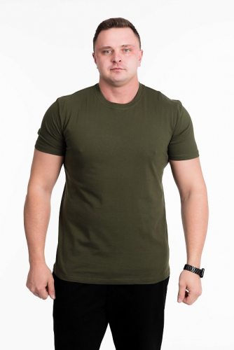 Мужская футболка выполнена из однотонного хлопкового полотна. Горловина имеет круглый вырез. Свободный крой футболки обеспечивает свободу движений. Благодаря натуральному составу ткани, изделие носится долго и с комфортом.