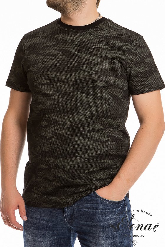 Мужская футболка выполнена из хлопкового полотна с набивным рисунком. Покрой свободный, горловина имеет круглый вырез.