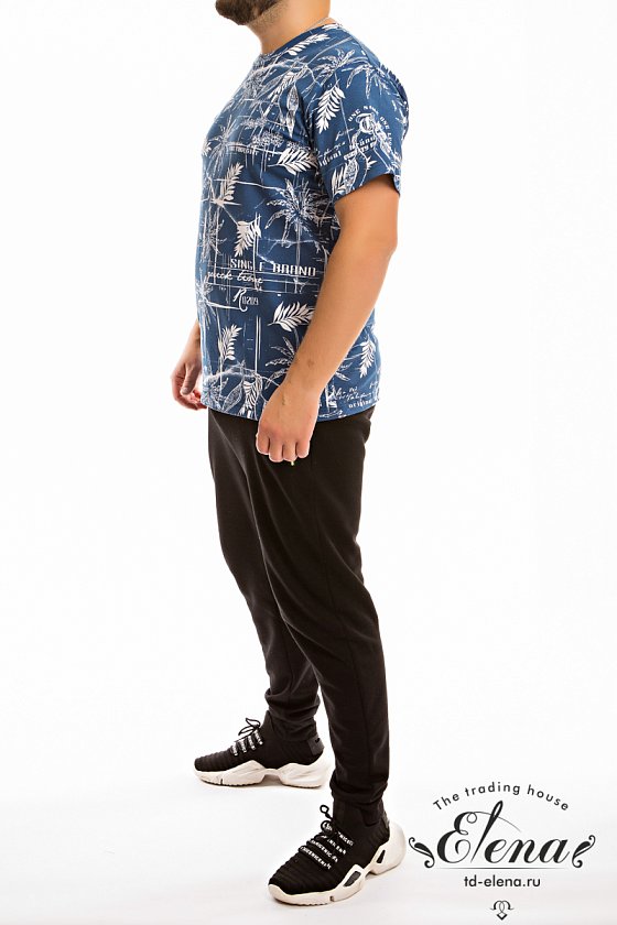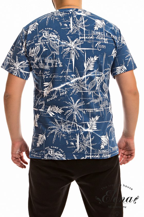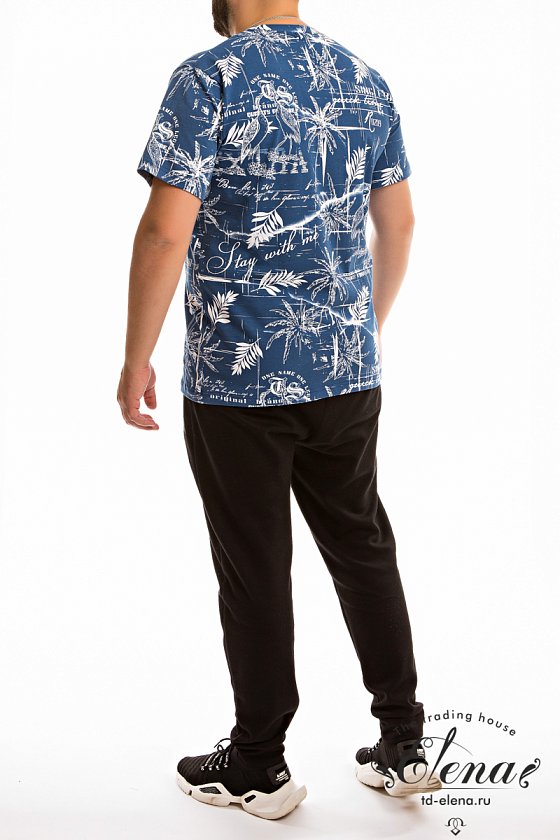 Футболка мужская из кулирки с лайкрой. С коротким втачным рукавом и круглым вырезом горловины. Горловина обработана планкой из основного полотна.