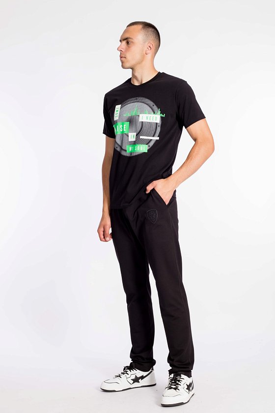 Мужская футболка выполнена из х/б полотна с лайкрой. Рукав короткий, втачной, горловина имеет круглый вырез. Спереди расположен принт.
