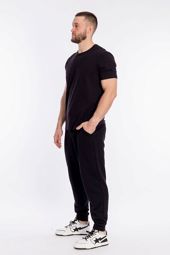 Футболка свободного силуэта выполнена из однотонного хлопкового полотна. Футболка с коротким рукавом и притачной планкой по круглому вырезу горловины.
