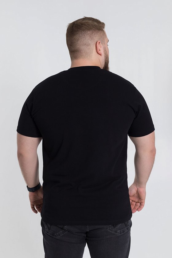 Мужская футболка выполнена из х/б полотна с лайкрой. Круглый вырез горловины, на полочке термопринт