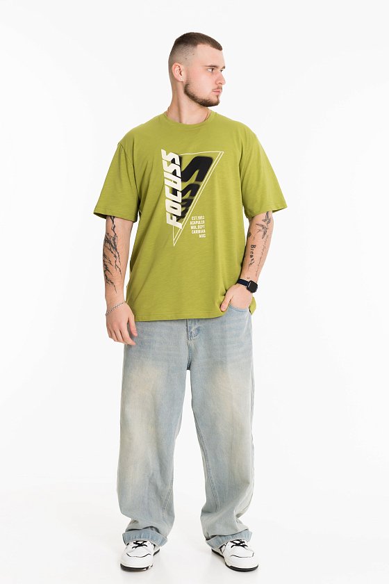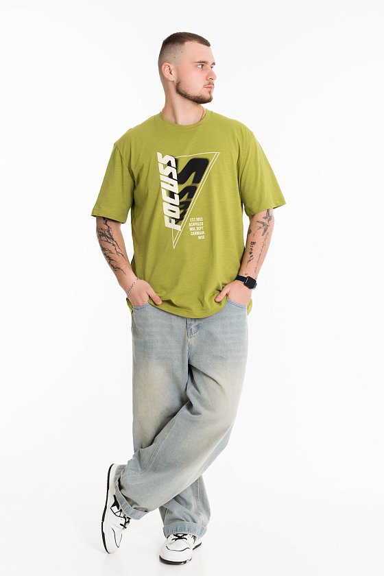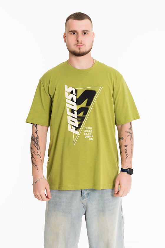 Мужская футболка с принтом спереди изготовлена из хлопкового полотна - кулирка "фламли", что обеспечивает комфорт и хорошую воздухопроницаемость. Футболка имеет короткий рукав и круглый вырез горловины. Изготовленная из натуральной ткани, футболка обеспечит комфорт в течение всего дня.