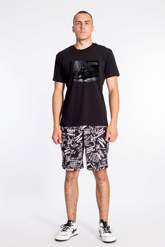 Мужская футболка выполнена из однотонного х/б полотна с лайкрой. Рукав короткий, втачной, горловина имеет круглый вырез. Спереди нанесен принт.