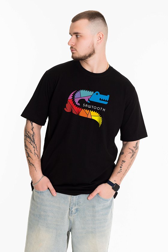 Мужская футболка с принтом, выполненная из кулирки в однотонном черном цвете станет универсальным элементом гардероба. Она имеет прямой крой, втачной рукав и круглый вырез горловины, что делает ее комфортной и подходящей для повседневной носки. Футболка выполнена из качественного материала, который приятен на ощупь и обеспечивает хорошую вентиляцию. Черный цвет легко сочетается с различной одеждой, что позволяет создавать разнообразные образы. Эта классическая футболка подойдет как для занятий спортом, так и для прогулок или повседневного использования. Простота и стиль в одном предмете одежды делают ее отличным выбором для любого мужчины.