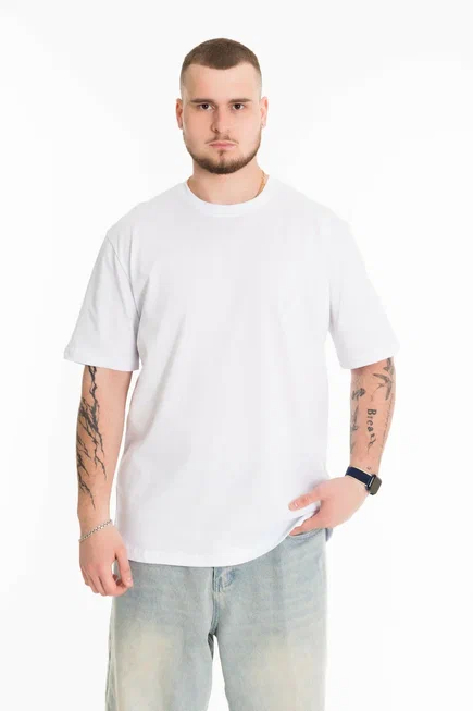 Мужская футболка с принтом на спине, выполненная из кулирки в однотонном белом цвете станет универсальным элементом гардероба. Она имеет прямой крой, втачной рукав и круглый вырез горловины, что делает ее комфортной и подходящей для повседневной носки. Футболка выполнена из качественного материала, который приятен на ощупь и обеспечивает хорошую вентиляцию. Белый цвет легко сочетается с различной одеждой, что позволяет создавать разнообразные образы. Эта классическая футболка подойдет как для занятий спортом, так и для прогулок или повседневного использования. Простота и стиль в одном предмете одежды делают ее отличным выбором для любого мужчины.
