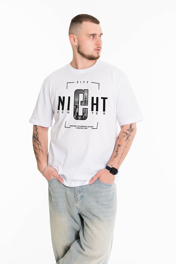 Мужская футболка с принтом, выполненная из кулирки в однотонном белом цвете станет универсальным элементом гардероба. Она имеет прямой крой, втачной рукав и круглый вырез горловины, что делает ее комфортной и подходящей для повседневной носки. Футболка выполнена из качественного материала, который приятен на ощупь и обеспечивает хорошую вентиляцию. Белый цвет легко сочетается с различной одеждой, что позволяет создавать разнообразные образы. Эта классическая футболка подойдет как для занятий спортом, так и для прогулок или повседневного использования. Простота и стиль в одном предмете одежды делают ее отличным выбором для любого мужчины.
